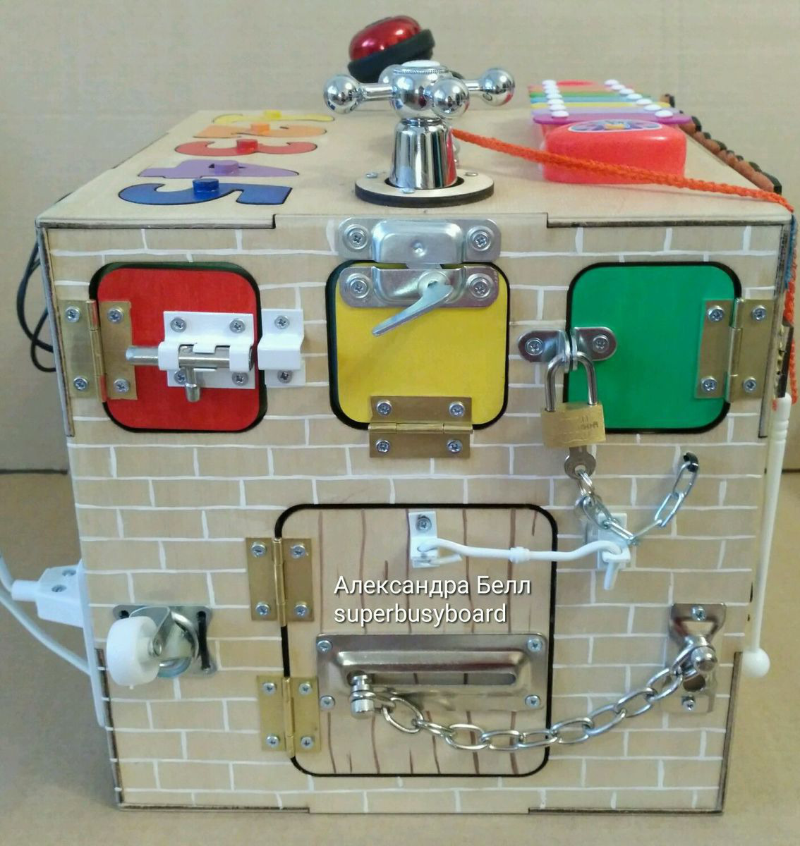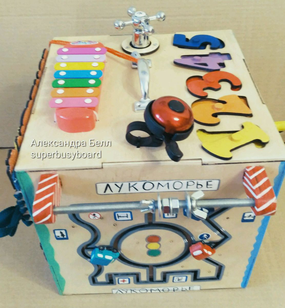 Занимательный бизикуб сделан на заказ, по дизайну замечательной мамы из г.Москва и по моему у нас неплохо получилось)))