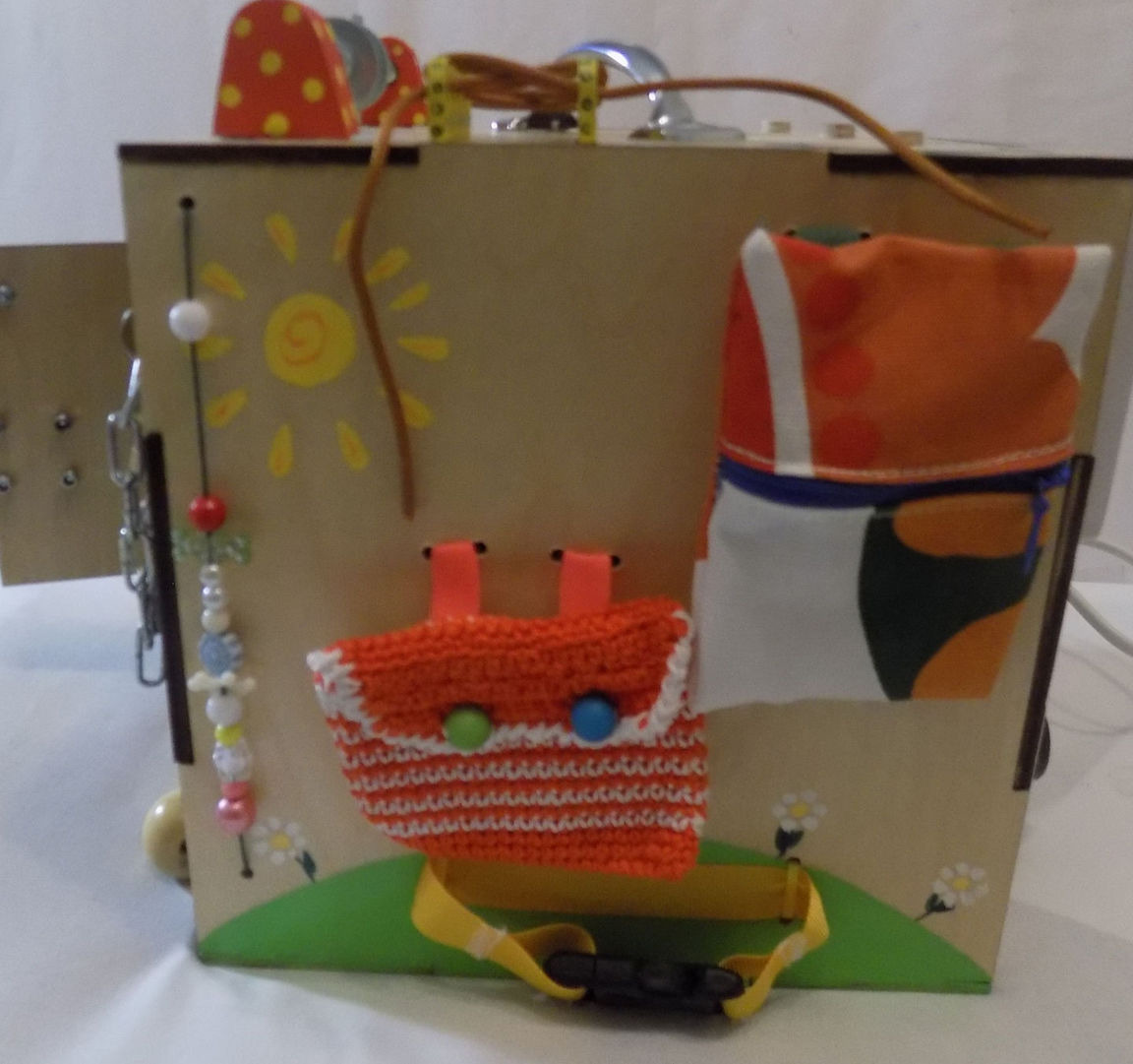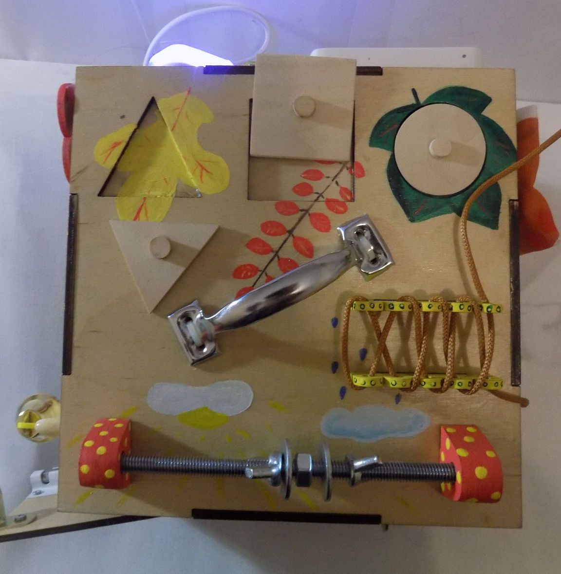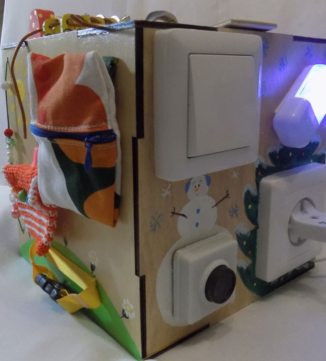 Развивающий кубик имеет много тактильных и разнообразных элементов.