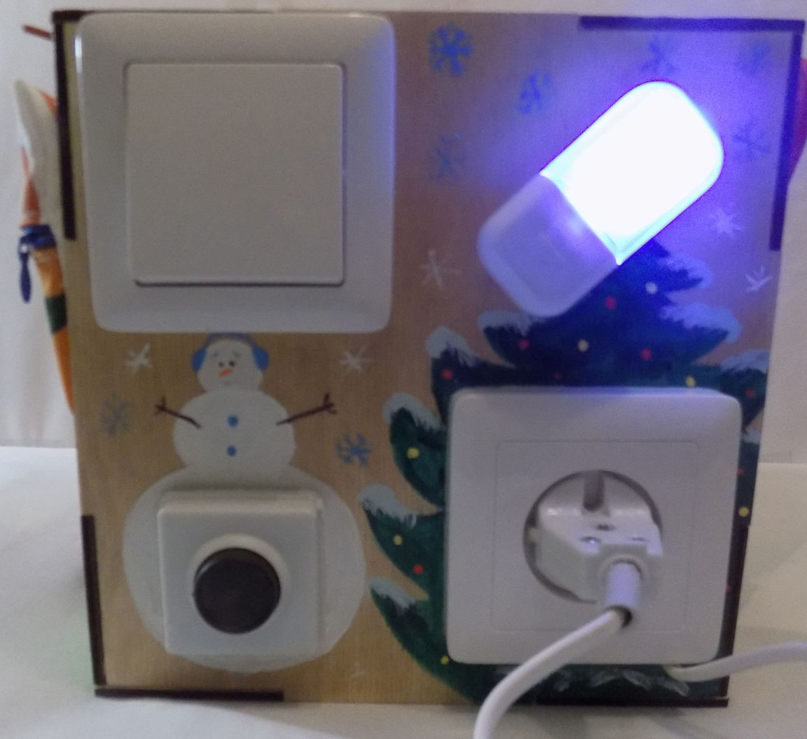 -светильник вкл и выкл выключателем и вкл при нажатии кнопки звонка, батарейка меняется.