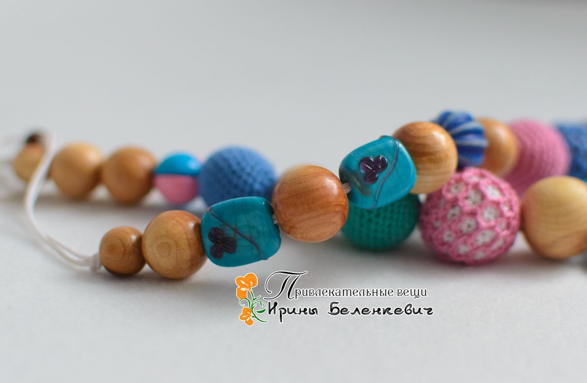 пластиковые бусины, вощеный шнур, деревянные бусины, Можжевеловые бусины, бусины лэмпворк (lampwork), пряжа хлопок 100%