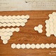 Как учиться считать. На доске есть три поля с вынимающимися сотами. Слева на лицевой поверхности доски выжжены подсказки по структуре числа. По любому из полей можно учиться считать от 1 до 10. Тут поможет только настойчивость и память ребенка. Когда ребенок запомнил числа, можно приступать к изучению сложения до 10. В этом поможет нижнее поле. В нем 10 ячеек, в которые можно уложить десять единичик или складывать совмещенные соты. Если ребенок положил в них, например, 7 сот, то для полного десятка ему нужно добавить 3. Все варианты выжжены ниже. Причем ребенок наглядно видит, что соты с числом более 3 в ячейки уже не влезут, а меньше - останутся свободные ячейки. Перебирая возможные варианты ребенок запоминает сложение до 10. Потом можно разнообразить эту задачу, предлагая составить десять из 3, 4 сот. Далее начинает использоваться правое поле. Добавляя к нижнему десятку соты 1,2...5...10, получаем 11,12...15...20. Подсказки опять же выжжены слева. Освоив счет до 20 и понимание, как складываюся числа, можно снова вернуться к левому полу и попробовать сложить числа от 1 до 9. Справа от поля выжжены подсказки построчно.