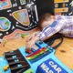Развивающая сумка-игрушка.Удобна в дороге и путешествии.Раскладываете,а там :Заправка авто с настоящих бензоколонок,Можно выставлять нужное колличество литров.Автомойка.Гараж на 4 авто.И мастеркая.в которой все необходимые интсрументы для ремонта.Супер игрушка для сорванца,у которого много маленьких машинок.