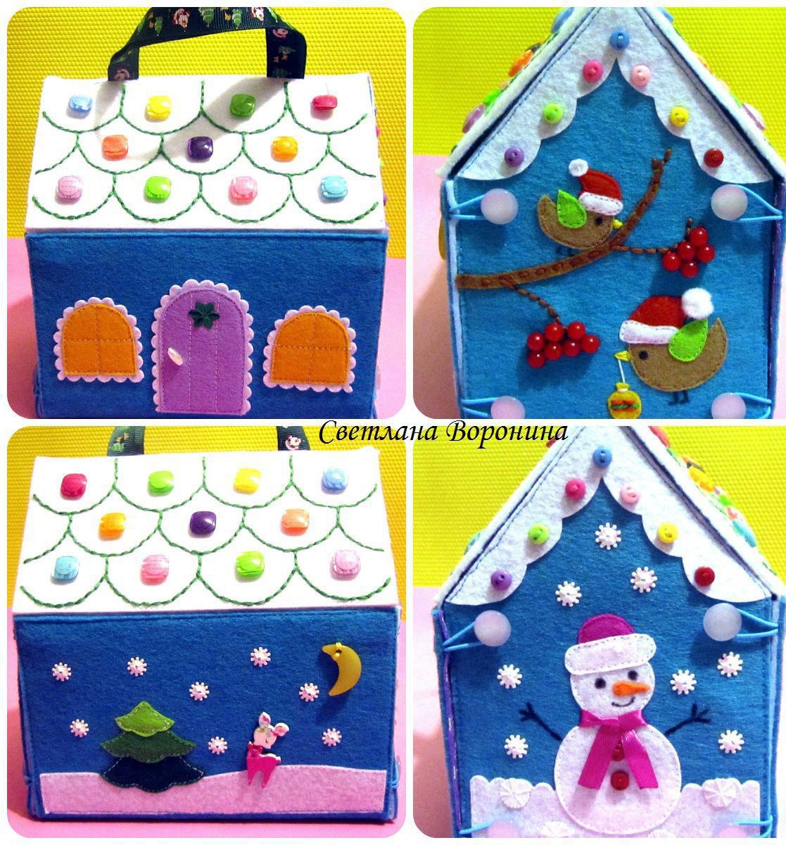 новогодний подарок, Новый год, подарок на день рождения, снеговик, оригинальный подарок, на заказ, новогодняя елка, комбинированный, игрушка в подарок, сладкий подарок, пряничный домик, полезный подарок, домик из фетра, сумочка из фетра, сумочка своими руками, подарок своими руками, кукольный домик, снегири из фетра, сумочка-домик