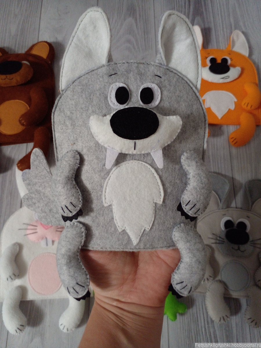 Очаровательные звери ждут теплые ладошки) лапки и мордочка набиты синтепоном. Цена за шткку. Размер от 16 до 12 см. Можно набором или штучно. Возможно выполнение других героев сказок.