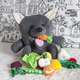 Волчонка можно кормить, я для игры связала и сшила овощи, фрукты и ягоды. А во время кормления можно изучать цвета, размер, попросить например накормить волчонка овощами или фруктами, можно считать сколько съел волчонок к примеру ягод). Читать стишки, показывать части тела у волка.