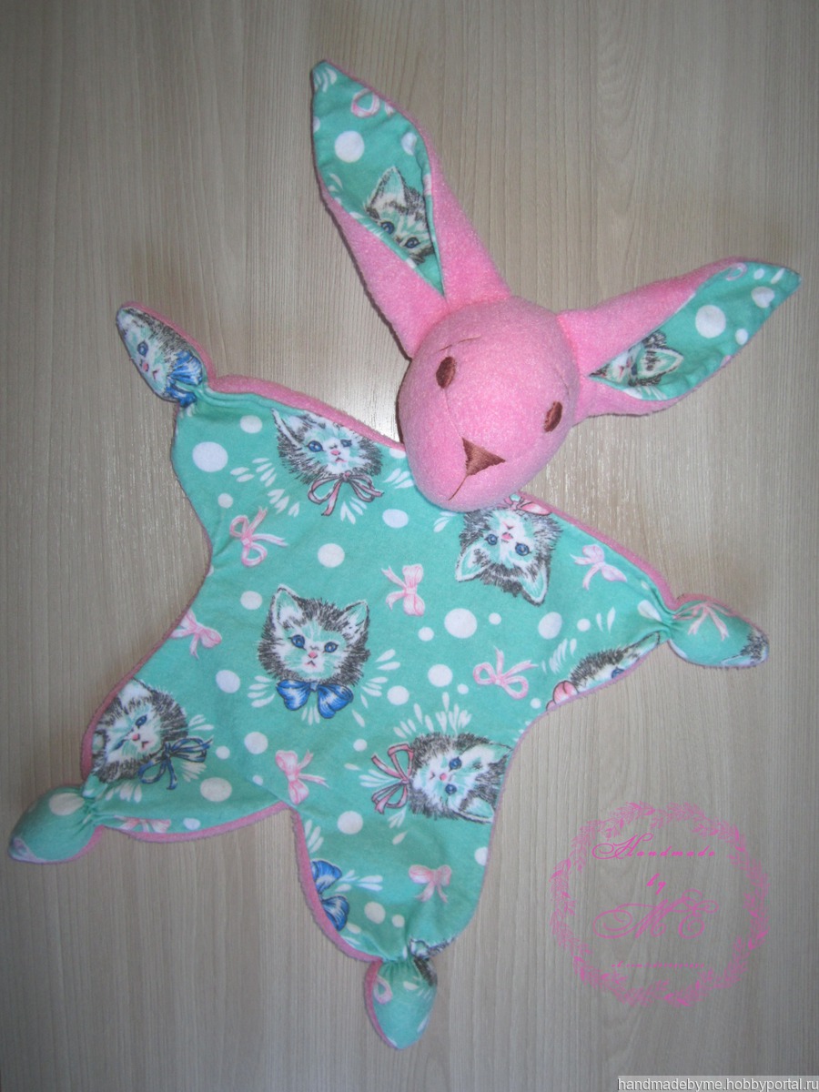 Ручная работа!!! Бережная стирка, температура не более 30 градусов. !!!! Не содержит мелких деталей, способных навредить ребенку!!!! Комфортер Куски/Cuski. Термин Cuski в переводе с уэлльского языка означает «засыпать». Также такие игрушки называют игрушками-компаньонами, обнимашками, сосуночками. Комфортер Куски был придуман мамой Сюзанн Каниццо. Уникальная концепция Куски в том, что комфортер рекомендуется сначала подержать рядом с мамой или папой, лучше положить на грудь во время кормления, чтобы он впитал ваш запах. Когда наступит время положить малыша в кровать, дайте ему комфортер Куски — у вашего ребенка создастся впечатление, что мама рядом и это поможет ему заснуть.Комфортер Куски в Англии считается обязательной покупкой для малыша, это его первая игрушка-компаньон, первая игрушка новорожденного. Английские мамы обычно покупают по 2 комфортера сразу, чтобы на время стирки ваш малыш не остался без своего первого друга. Куски легко везде брать с собой, легко стирать, он не деформируется после стирки. Как правило, дети не сразу расстаются с Куски — игрушка служит им несколько лет, ее берут в поездки, с ней спят, играют, девочки постарше кладут ее в кроватку уже своим куклам.