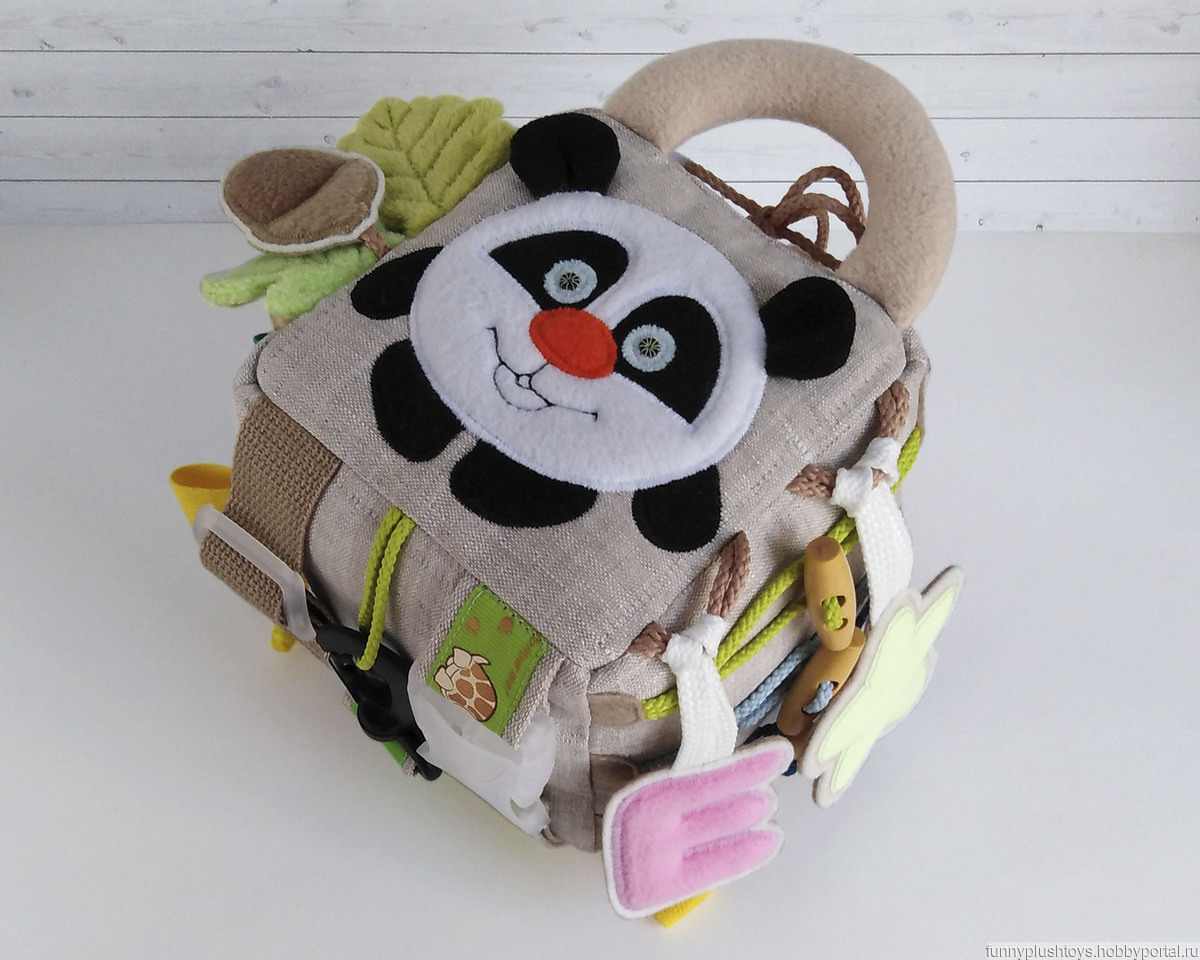 Этот чудесный занятой куб сделан с любовью из высококачественных материалов по методике Монтессори. В этом кубе много разных застежек, ленточек, пуговиц, шнуровки, бусин и многого другого. Такое отличное сочетание разных застежек отлично тренирует мелкую моторику рук. Этот живой куб надолго развлечет ребенка в поездке, в самолете, в больнице или в любом месте, когда вам это нужно. Любой ребенок будет в восторге от такого подарка!
