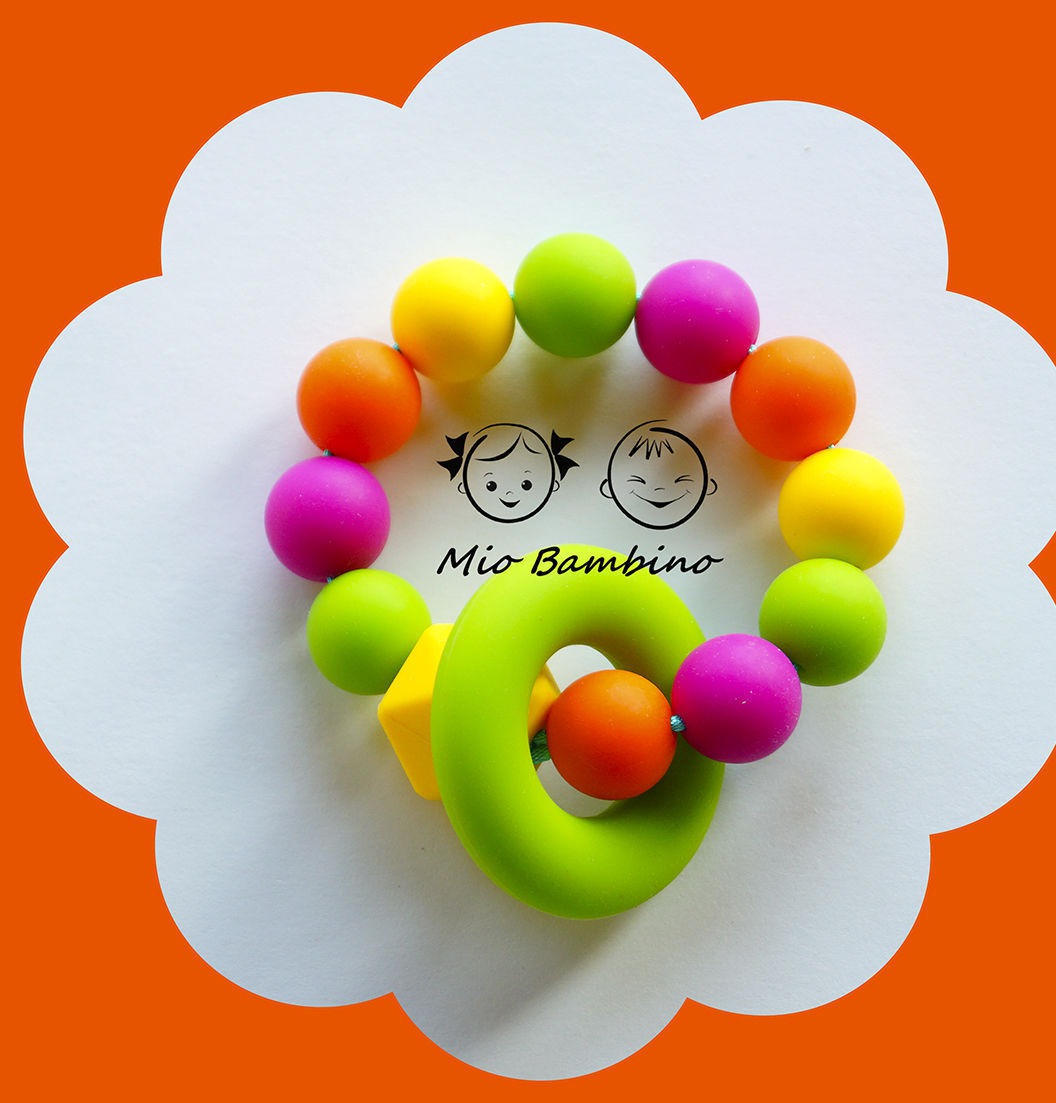 У малыша режутся зубки? Как найти выход? Облегчить прорезывание зубиков поможет наш жевательный пончик-прорезыватель! Он сделан из безопасного пищевого силикона, имеющего сертификаты качества! Все бусины нанизаны на крепкий нейлоновый шнур, а не на резинку. Попробуйте потянуть пончик двумя руками в разные стороны - шнур выдержит! Благодаря ярким цветам пончик привлекает внимание малыша. Бусины разного размера и формы развивают мелкую моторику, а еще о них приятно почесать десенки. Силикон мягко пружинит при нажатии, по плотности похож на зефир или мармелад, но от него невозможно откусить кусочек! Специальное колечко на наших пончиках можно двигать в разные стороны, это очень интересно маленьким исследователям!