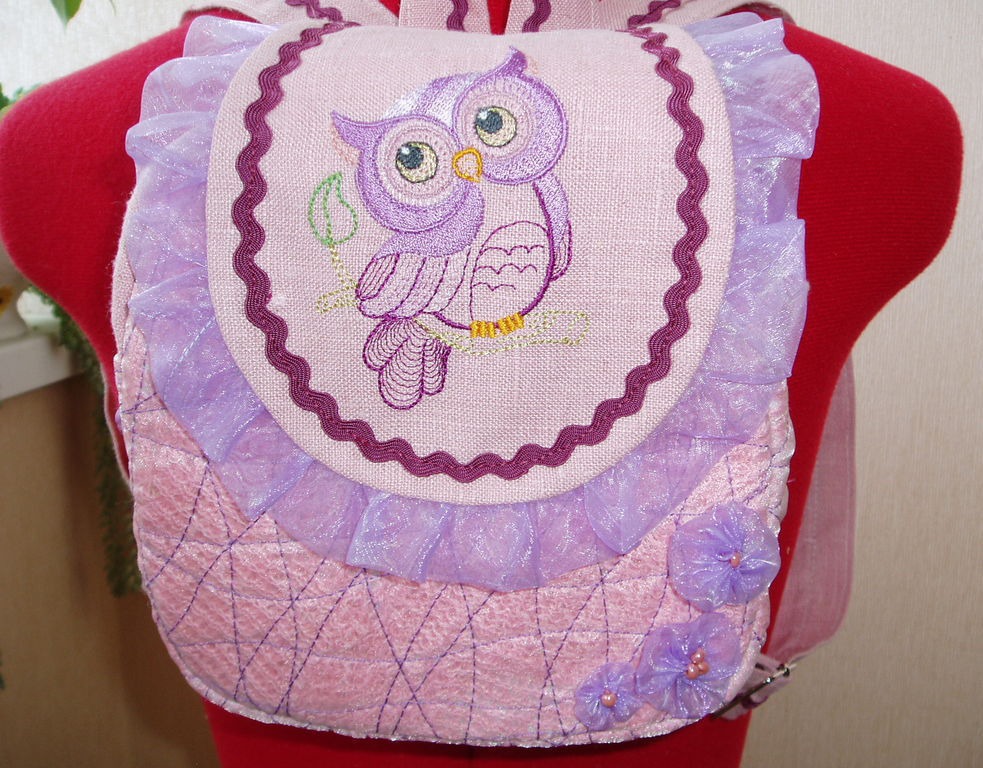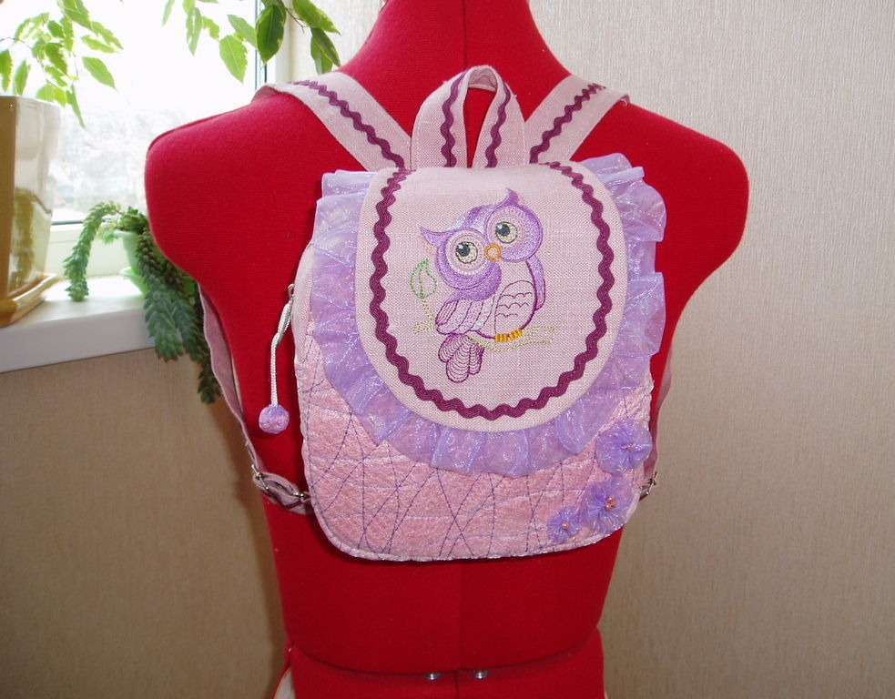 орнамент, подарок на день рождения, сова, розовый, сумка ручной работы, для ребенка, совушки, для прогулок, рюкзак ручной работы, сова в подарок, детский рюкзак, рюкзачок для ребенка, товары для детей