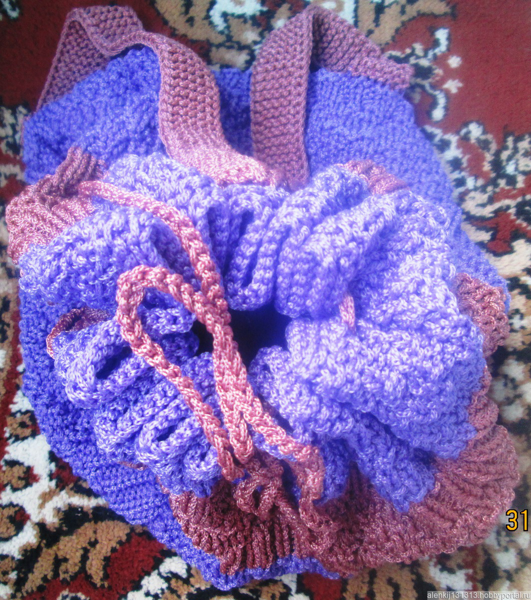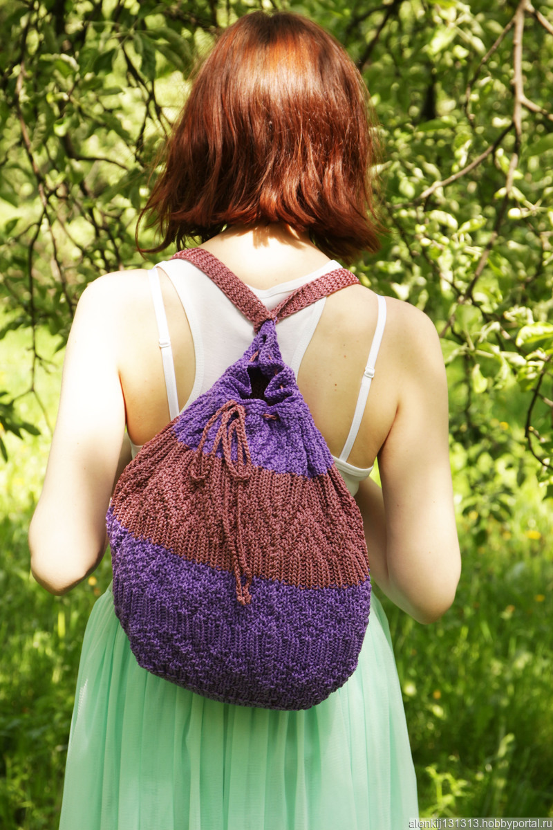 Рюкзак спицами из пряжи "Макраме" с теневым рисунком, очень вместительный, бесшовный