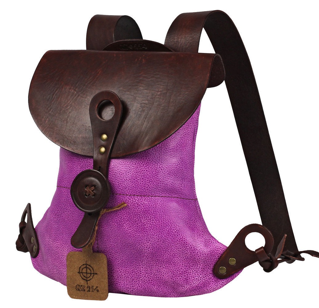 Модель: LUNA.Очаровательный рюкзачек (цвет: фуксия) для жизнерадостных девушек и женщин! Просторное отделение с внутренним карманом на кнопке. Застежка - декоративная пуговица из кожи. Кожа- выделка Италия. Фурнитура: состаренная латунь (Италия).