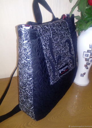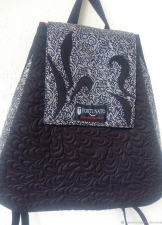 прстеганной на поролоне,комбинированной с исусственной кожей.Практически не прмокает.Очень практичный и удобный.Ремни регулируемые. можно отстегнуть и использовать как сумку.Художественная стежка украшает и делает рюкзак плотным и в то же время легким.Три внутренних кармана.Довольно объемный, можно использовать как школьный или дорожный.