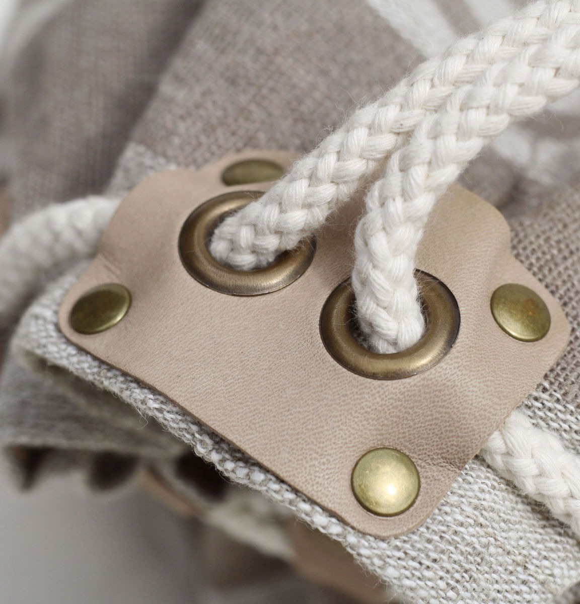 Модель: IBIZA. Сделайте лето комфортным! Рюкзачек создан из натуральных материалов, лёгкий, вместительный, практичный, занимает мало места. Очень удобен в использовании.Натуральный материал: лен с элементами кожи. Просторное отделение. Закрывается с помощью затягивающего шнура, клапана. Кожа- выделка Италия. Легкий - менее 200гр.