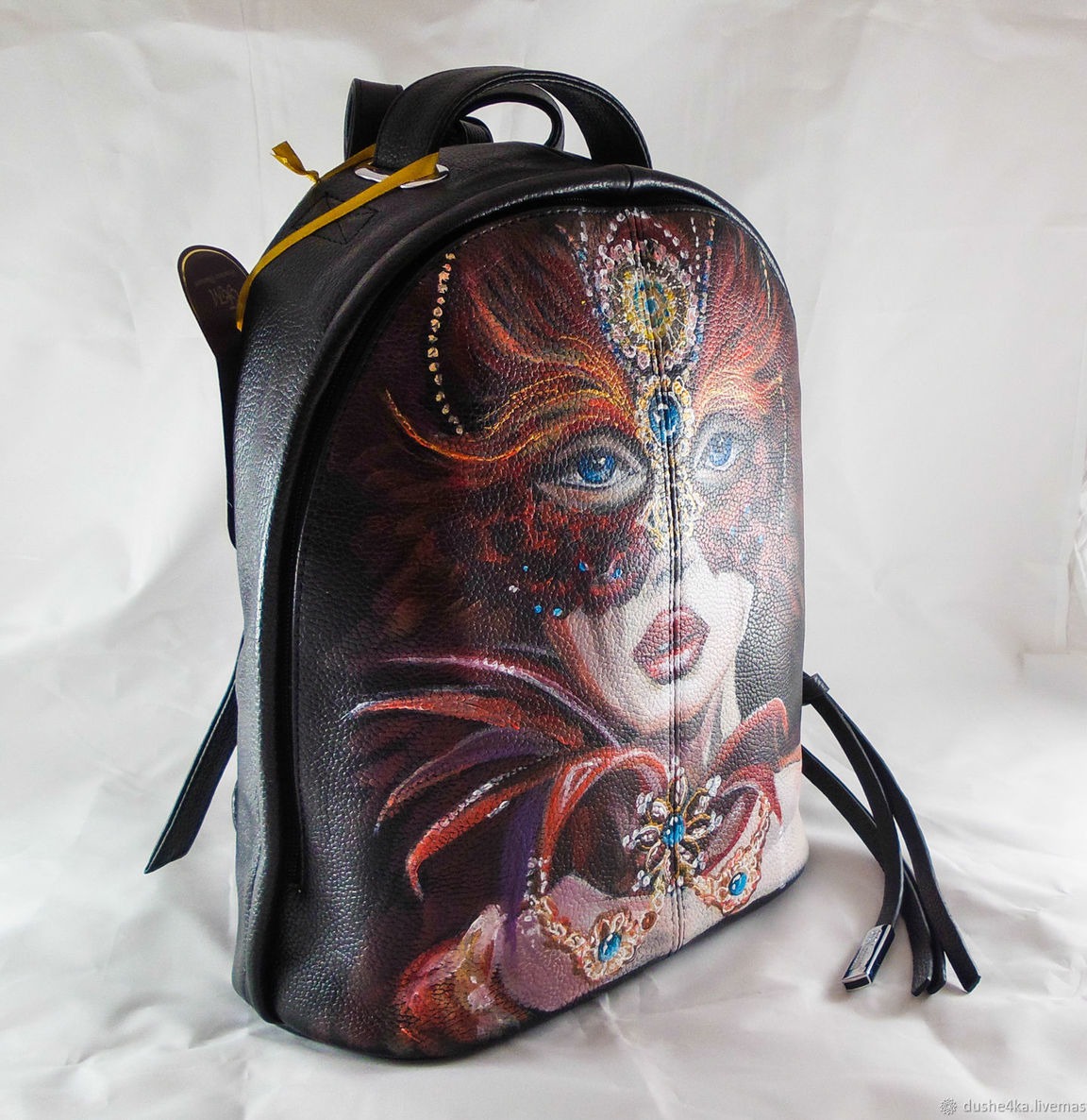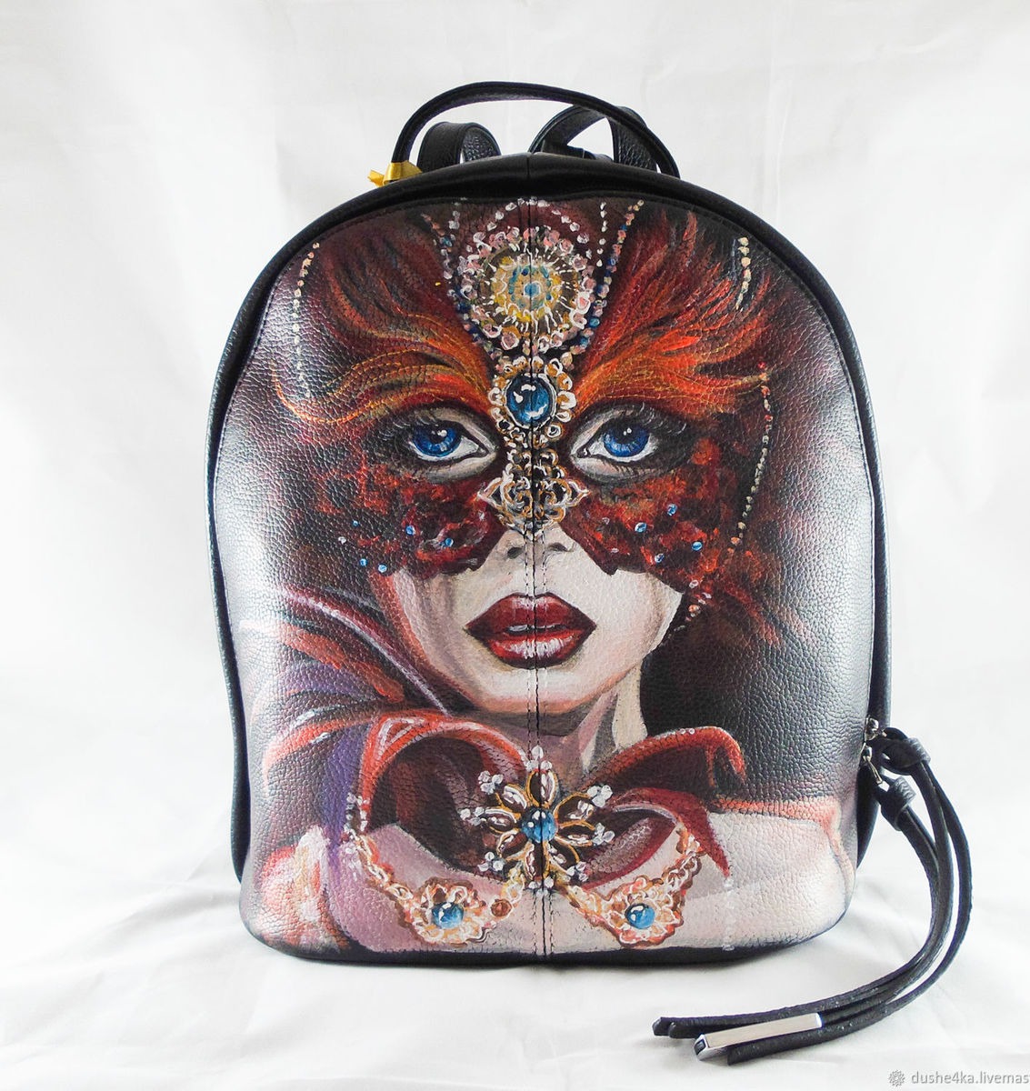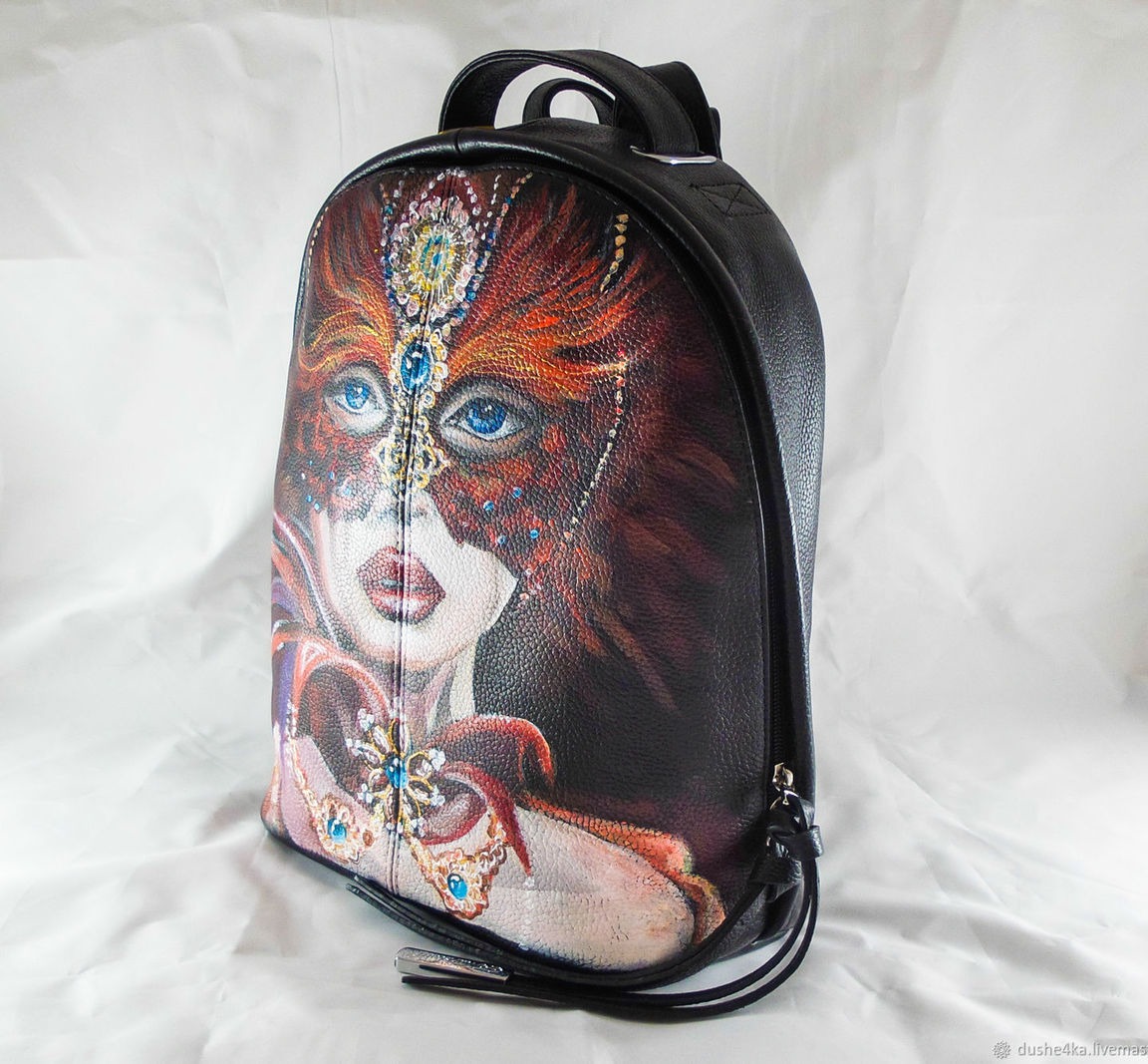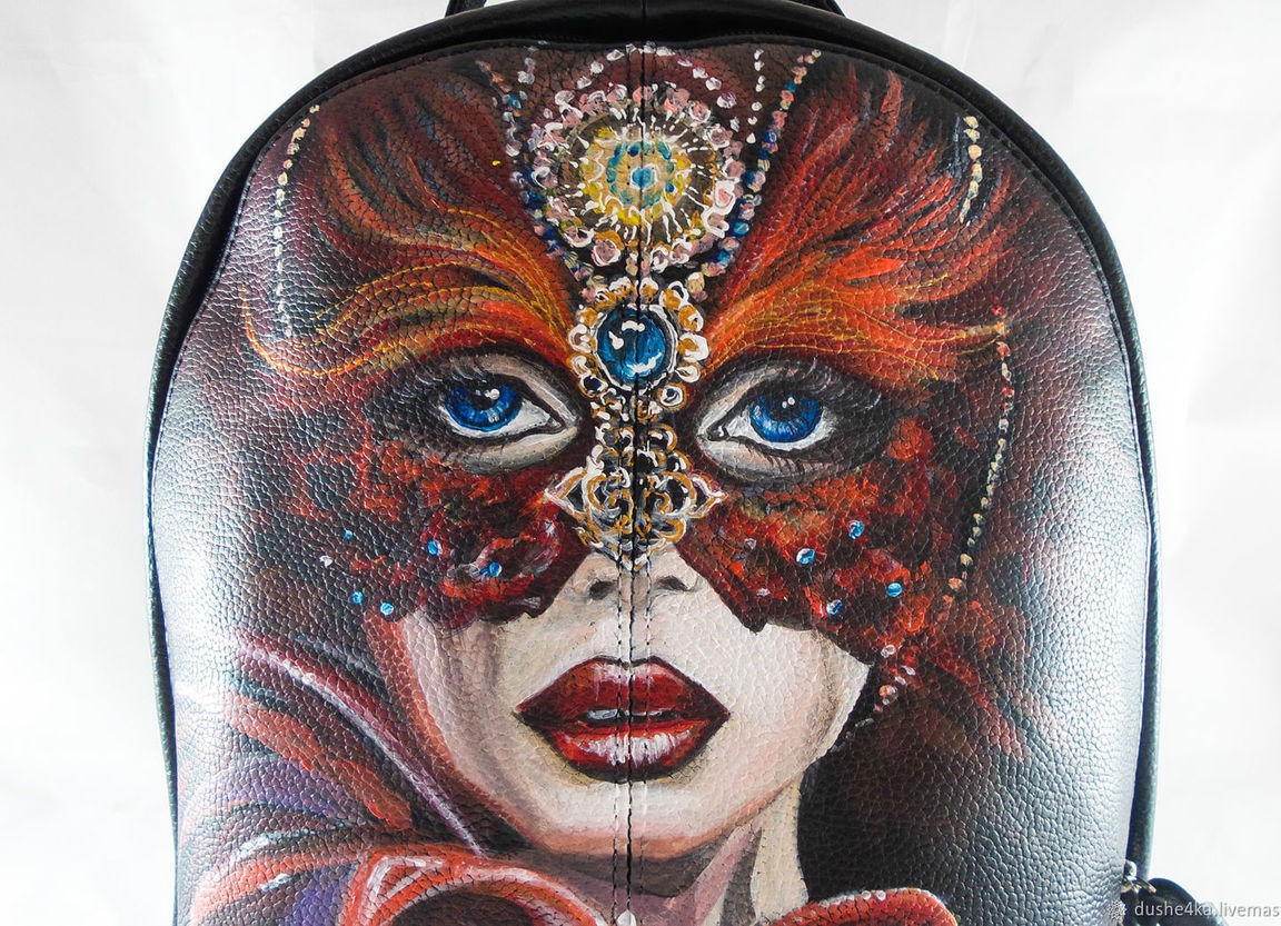 Рюкзак женский кожаный с ручной росписью из кожи Маскарад
