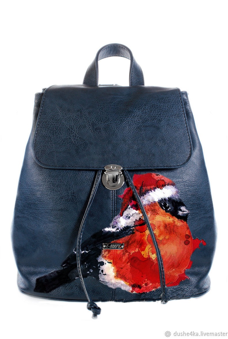 Рюкзак женский с ручной росписью из экокожи Снегирь