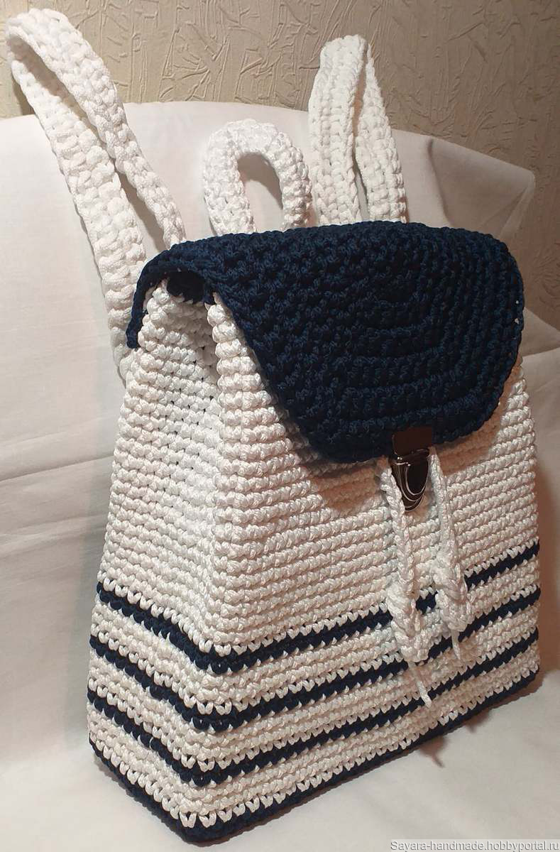 Женский рюкзак ручной работы с подкладкой и металлическим замком, материал: полиэфирный шнур. Внутри есть карман.