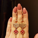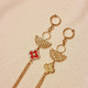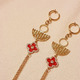 красный, клевер, серьги, серьги ручной работы, серьги длинные, красный цвет, серьги в подарок, серьги с подвесками, четырехлистный клевер, красные серьги, клипсы, цирконы, клипсы в подарок, клипсы на уши