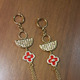 Яркие, летние клипсы. Длинные с кисточками и красными цветками в форме четырехлистного клевера. Позолоченная корейская фурнитура, эмаль. Клипсы по запросу можно переделать в серьги. Длина клипс 10,5 см.