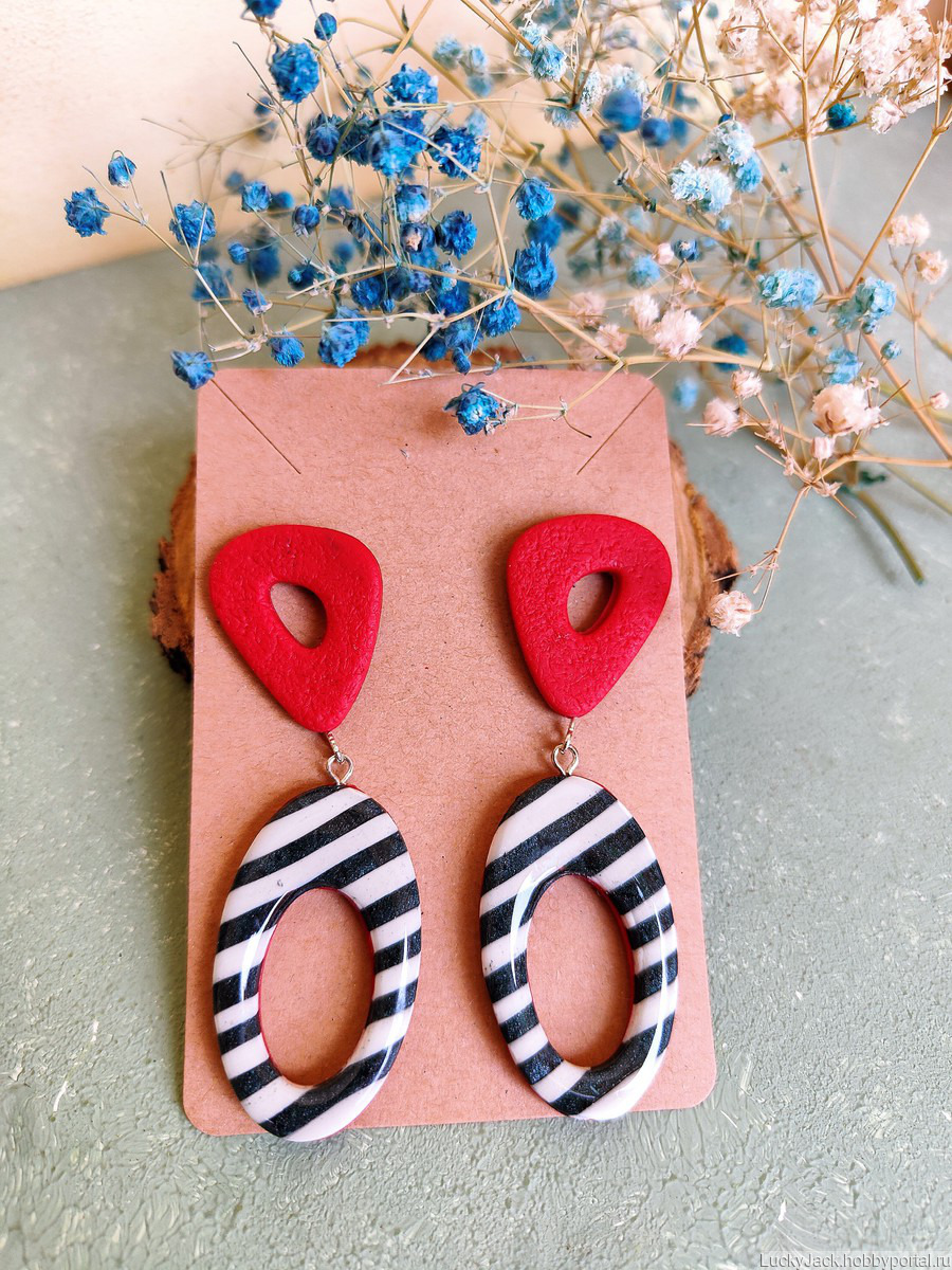 подарок девушке, украшения ручной работы, бижутерия ручной работы, серьги ручной работы, длинные серьги, авторская бижутерия, серьги с подвесками, красные серьги, идея подарка, яркие серьги, висячие серьги, серьги гвоздики красные, уникальные серьги, полосатые серьги, крупная бижутерия, броская бижутерия