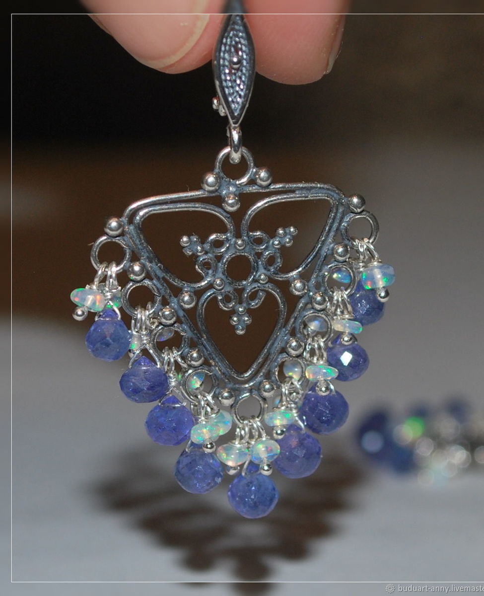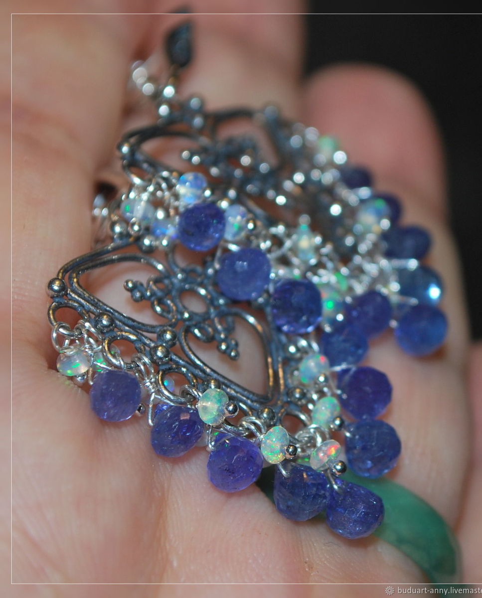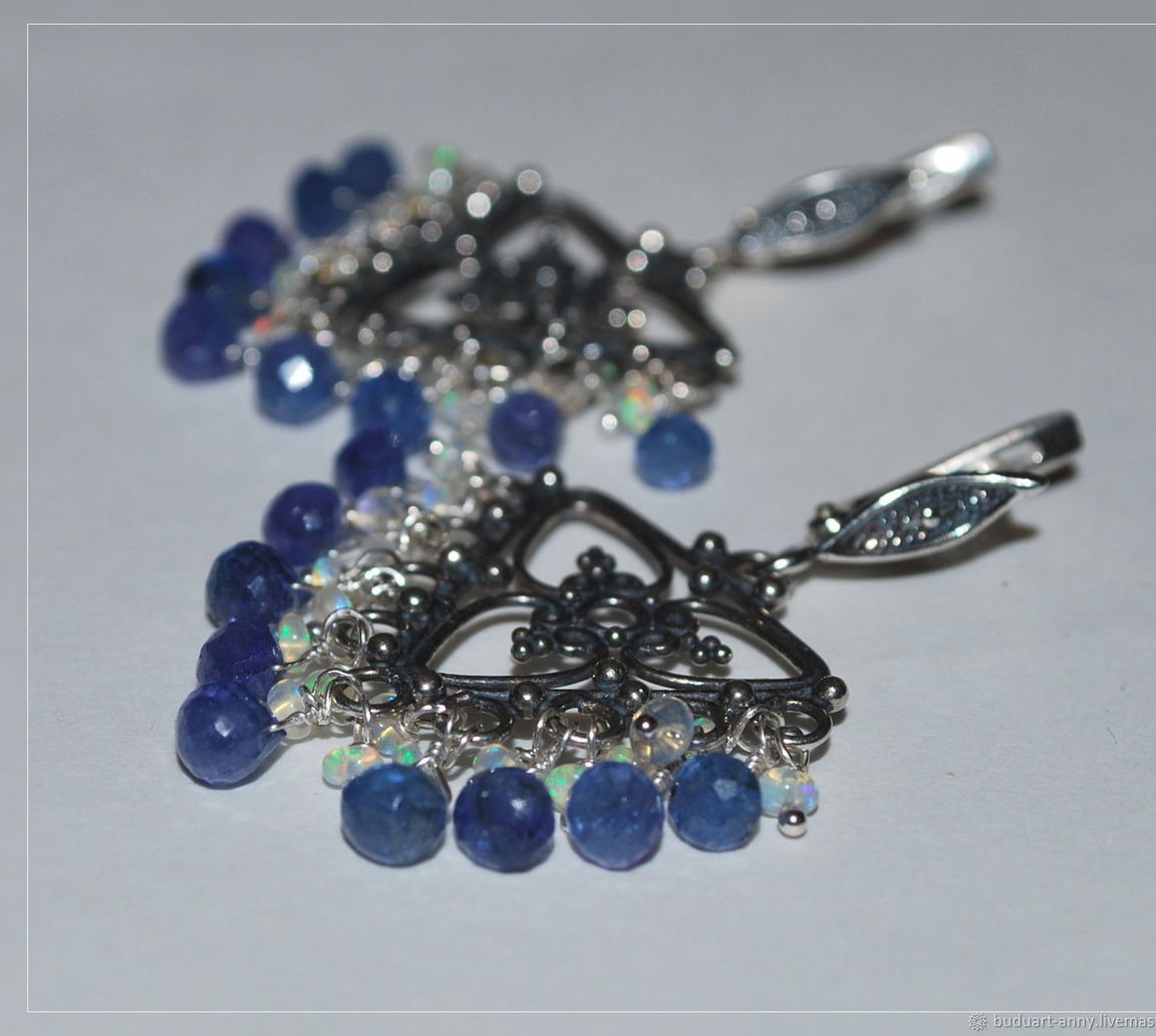 Выполнены из серебра 925 пробы, натурального танзанита и благородного опала!)