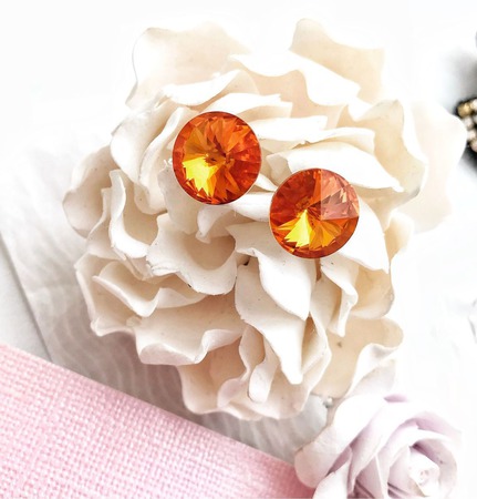 Сочные, яркие сережки с кристаллами Swarovski! На весну и на лето подойдут просто замечательно!Невероятно красивые! Основа - гвоздик с родиевым покрытием. Диаметр 12 мм. Сочные, чудесные, сверкающие :-)))