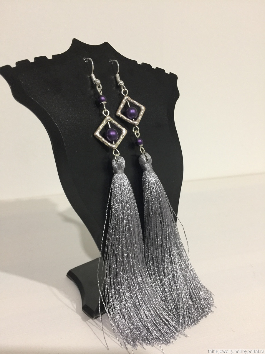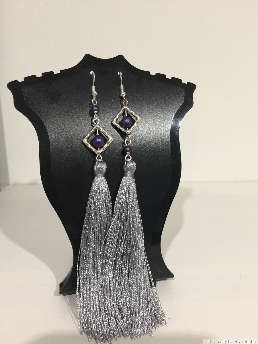 Кисточки из вискозы, чешский стеклянный жемчуг, фурнитура сплав.