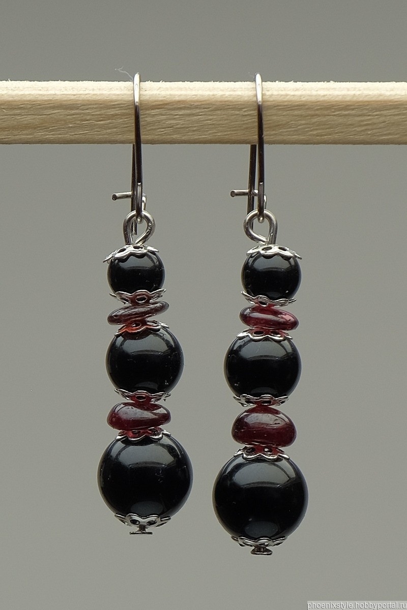 Стильные серьги из черного агата и граната выглядят элегантно. В них сдержанность и скрытая страсть.