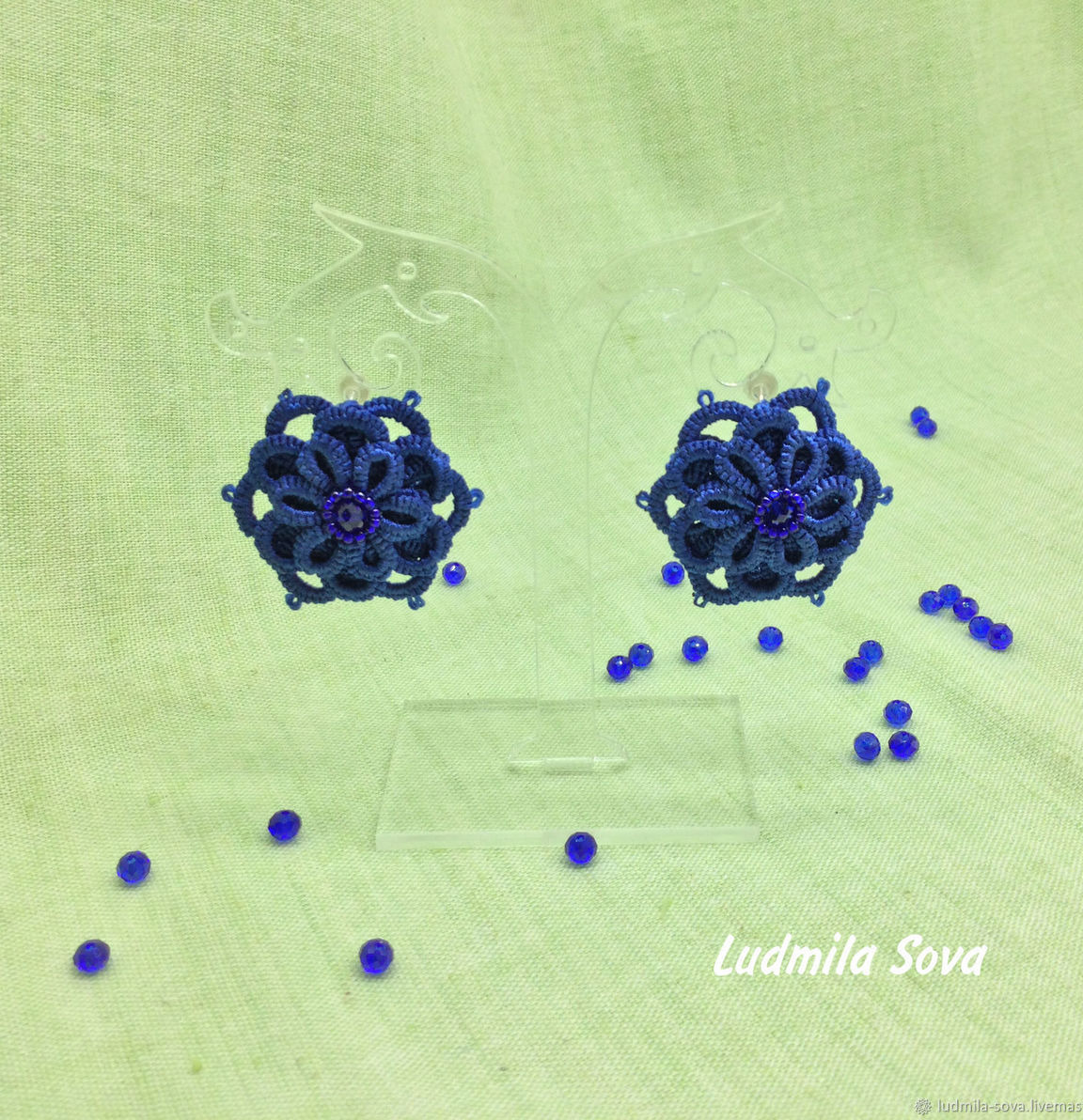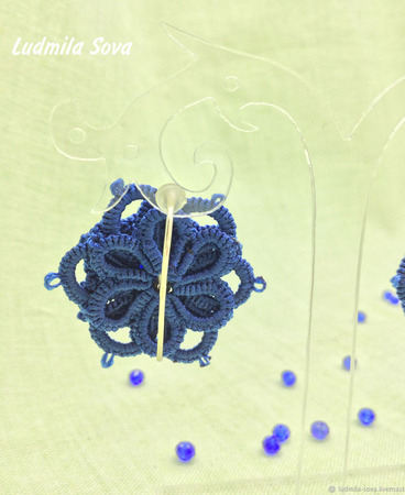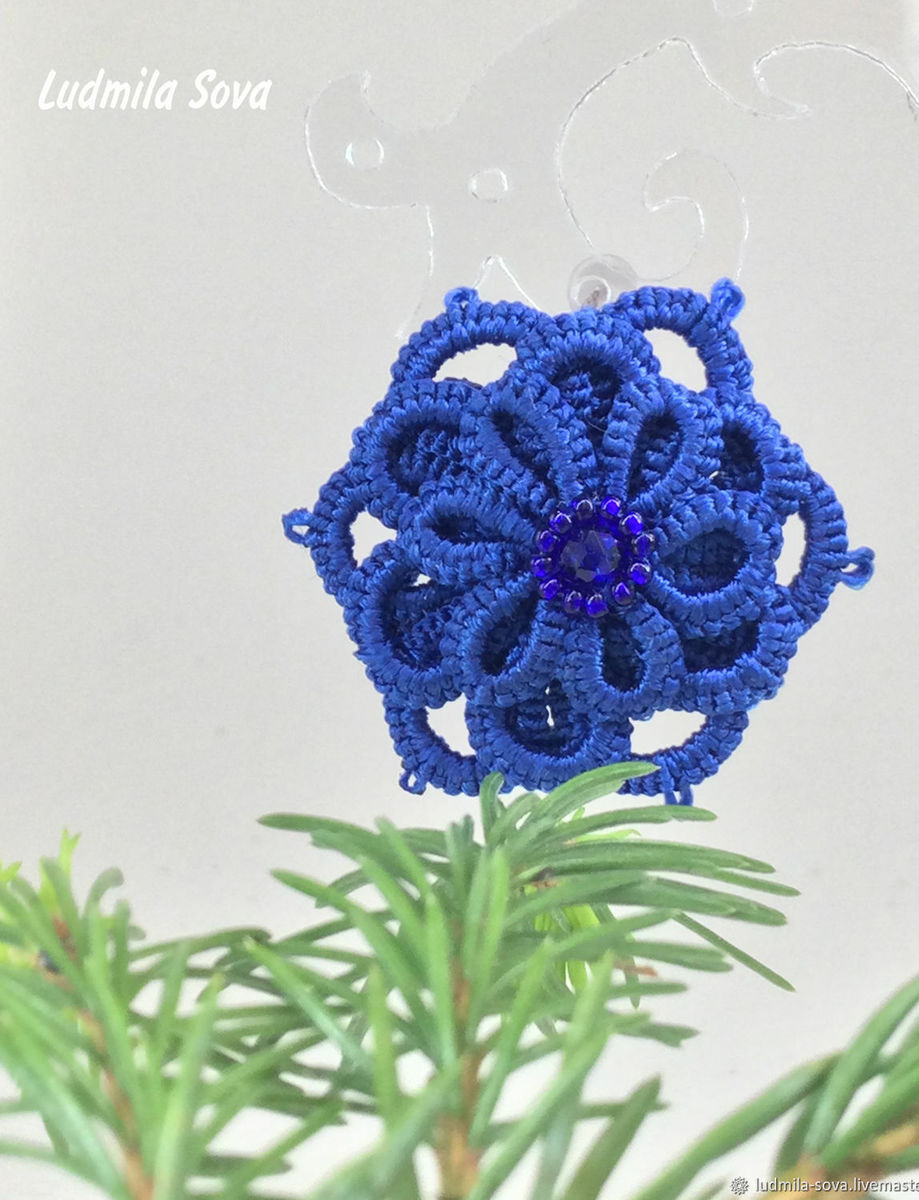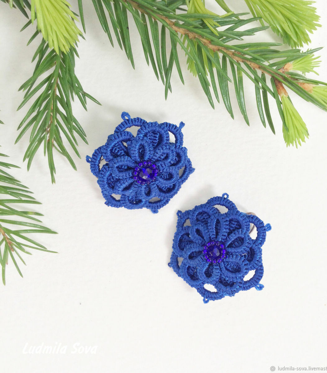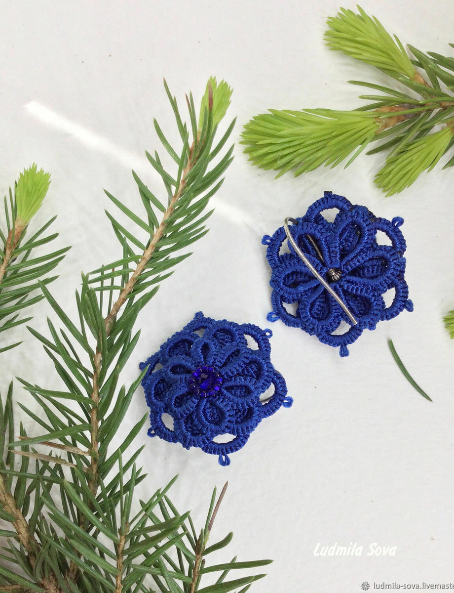 Серьги фриволите ярко синего цвета. Это один из модных цветов 2020 года.