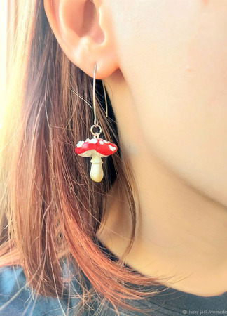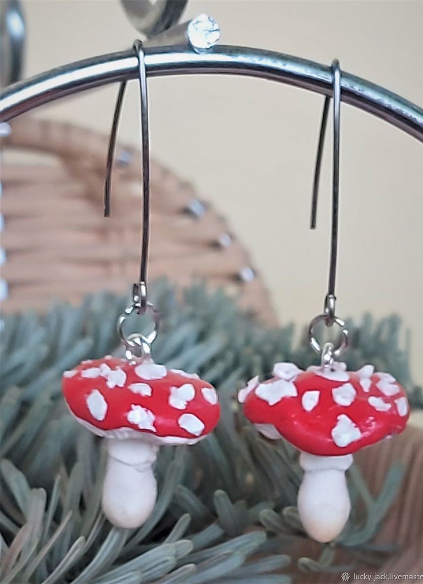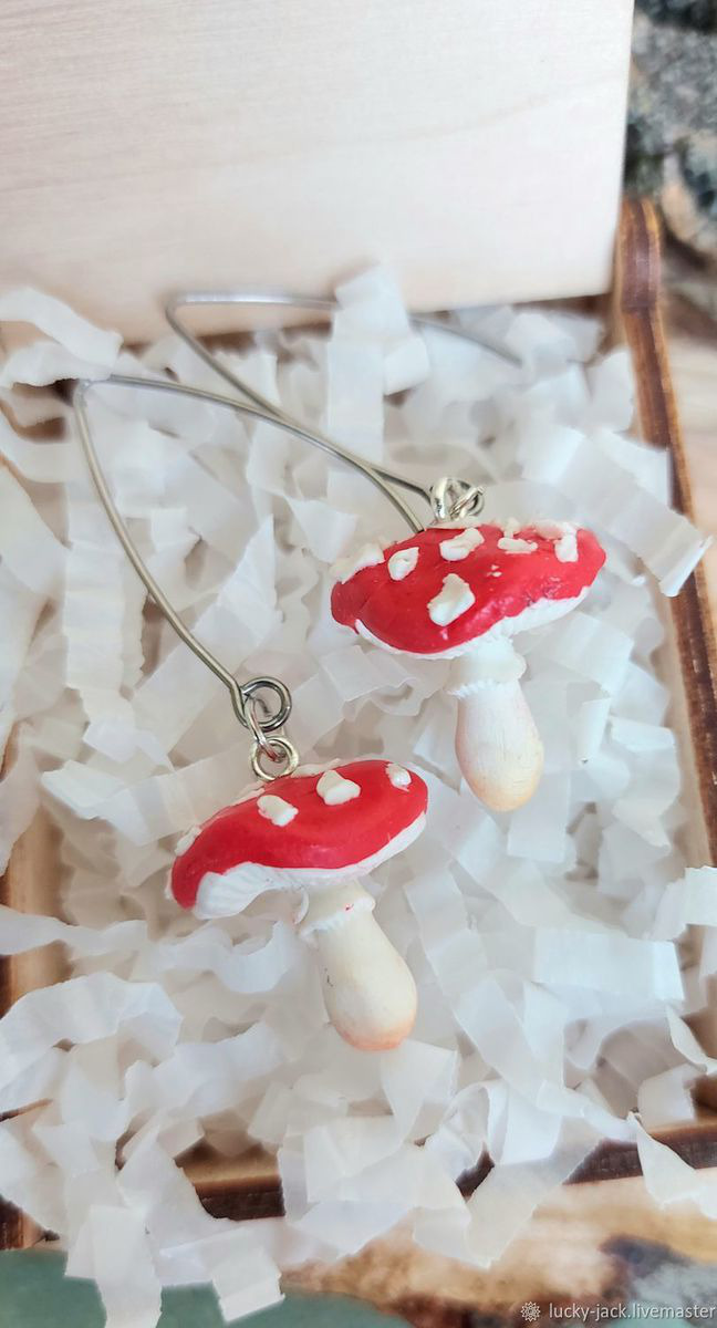 А Вы любите простые, но эффектные решения для создания стиля? Тогда эти сережки Грибы Мухоморчики уже привлекли Ваше внимание:))) Простые, но такие яркие серьги Мухоморы сделаны из полимерной глины. Грибочки располагаются на длинных швензах из нержавеющей стали. Очень легкие, практически не весовые.