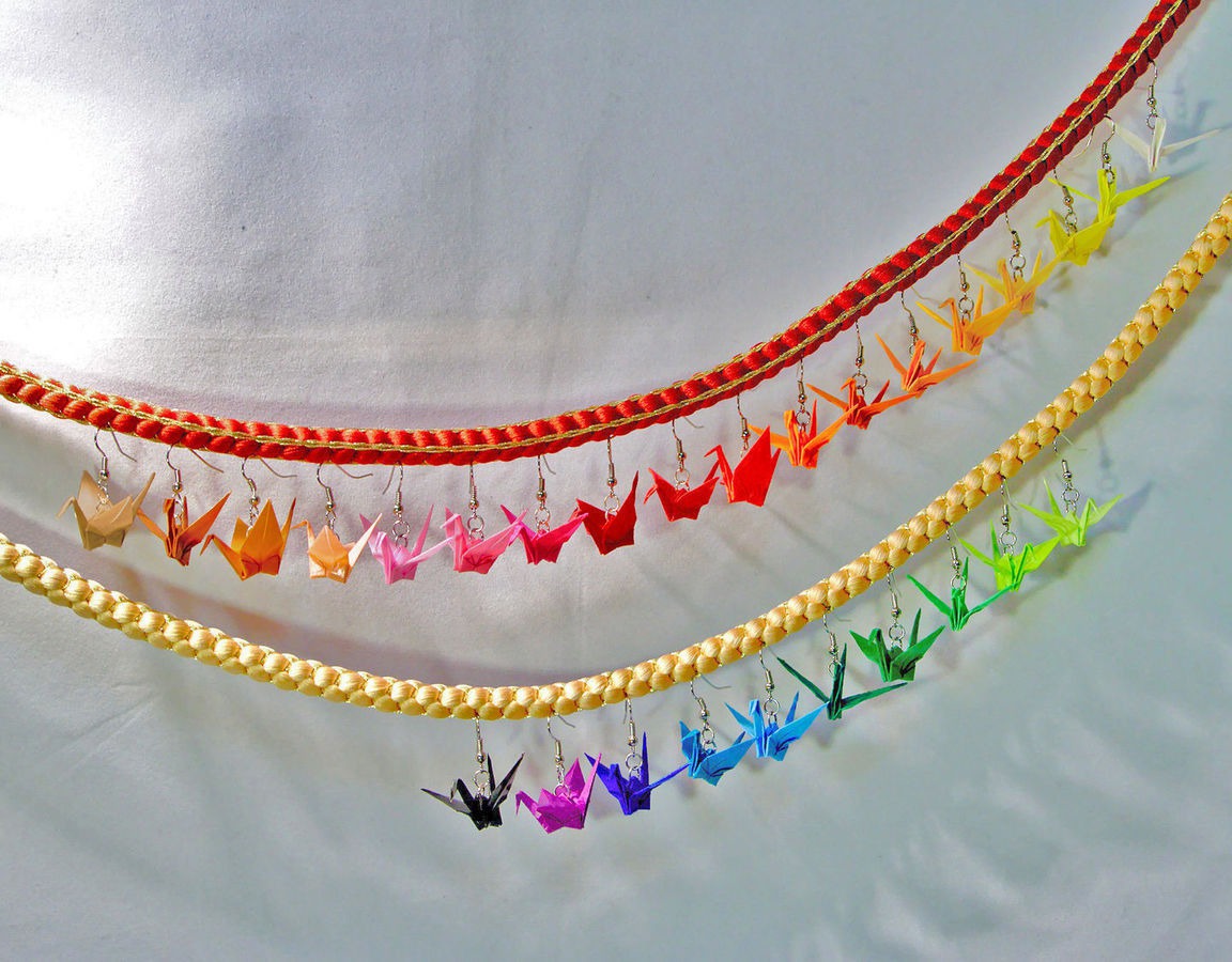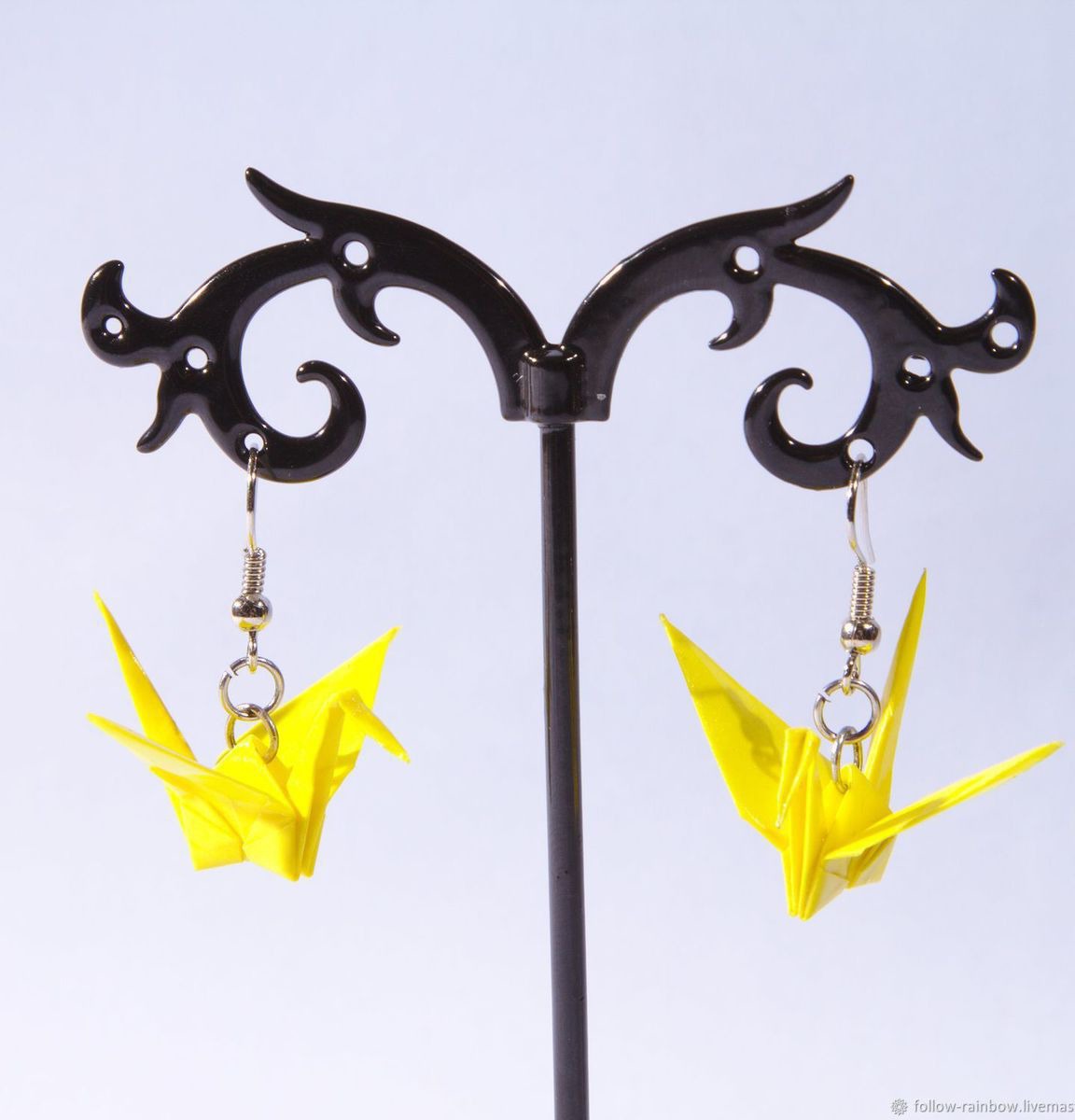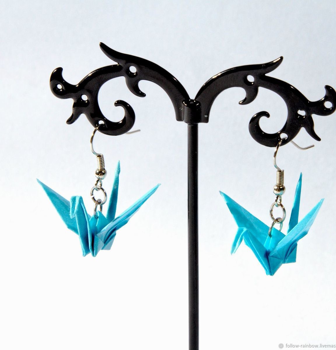 желтый, зелёный, голубой, белый, красный, оранжевый, розовый, синий, фиолетовый, птица, журавлик, коричневый, серьги, черный, фуксия, серьги висюльки, оригами, серьги-оригами, оригинальные украшения, клипсы