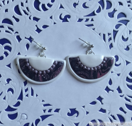Серьги из полимерной глины в форме лодочки, с использованием элементов алмазной мозаики и потали. Швензы гвоздики с силиконовыми заглушками.