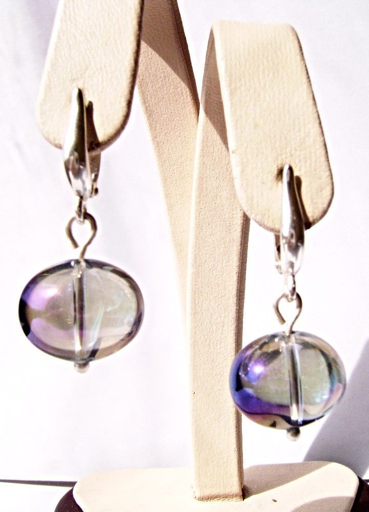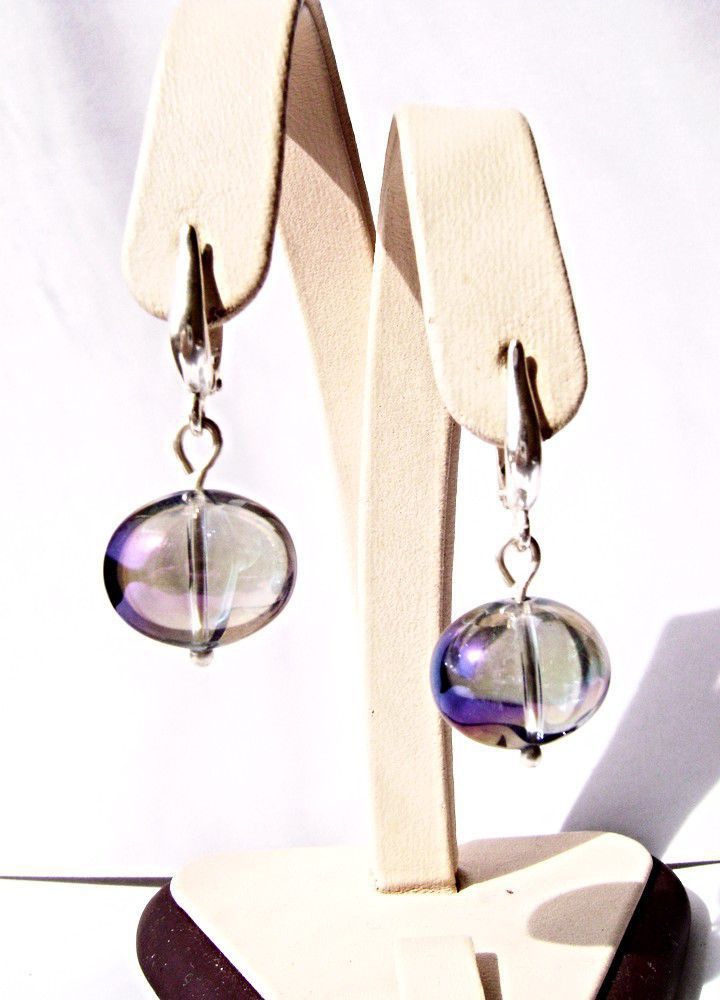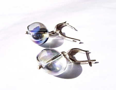 Серьги из серебра 925 пробы и крупных бусин из чешского стекла с эффектом АВ.
