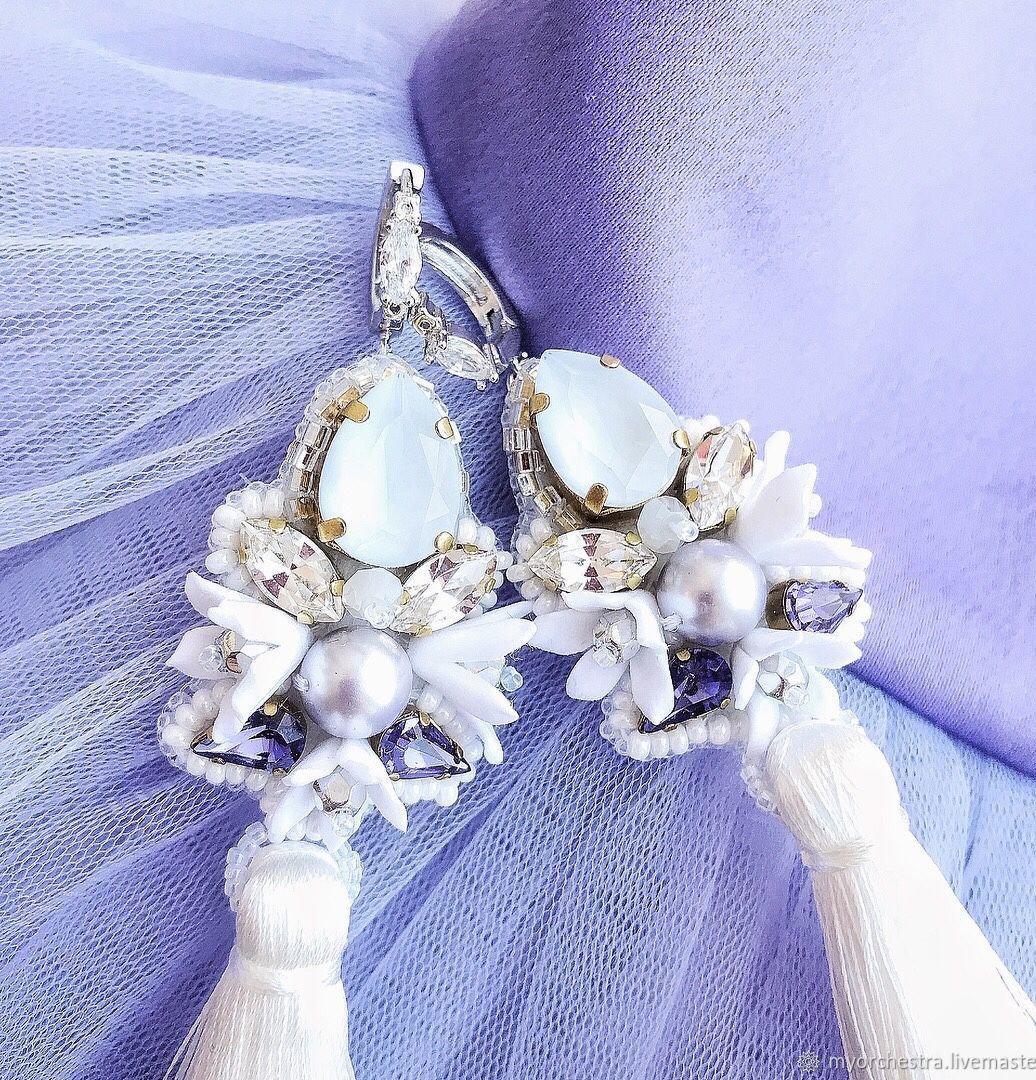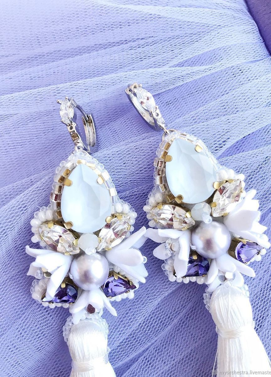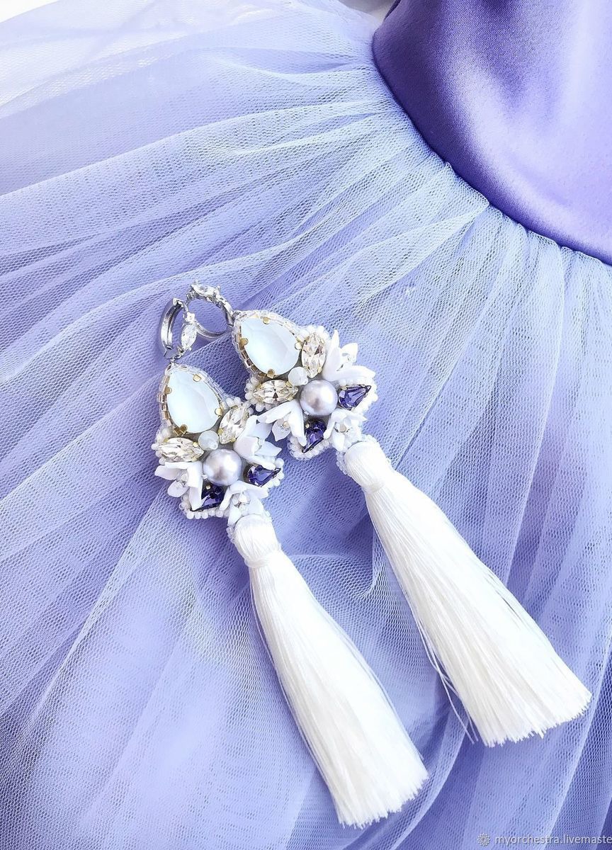 ручная работа, серьги, серьги ручной работы, белый цвет, серьги-кисти, серьги кисточки, серьги длинные, серьги в подарок, москва, серьги на выпускной, серьги на свадьбу, свадебные серьги, СПб, серьги кисточки купить, серьги кисти купить, серьги кисти шелк, серьги со swarovski, серьги кисти спб, серьги кисти москва, белые сережки
