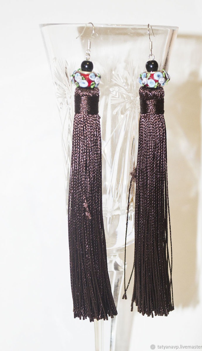 оригинальные серьги - кисти, большой выбор, длина кисти 12 см,общая длина сережек + размер бусин.
