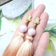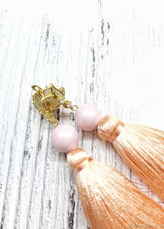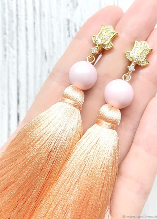 Нежные и пушистые персиковые кисти из немецкой вискозы с крупными конфетками- жемчужинами Swarovski! вкуснооо :-))) застежки в уши в виде лотоса с позолотой и фианитами.