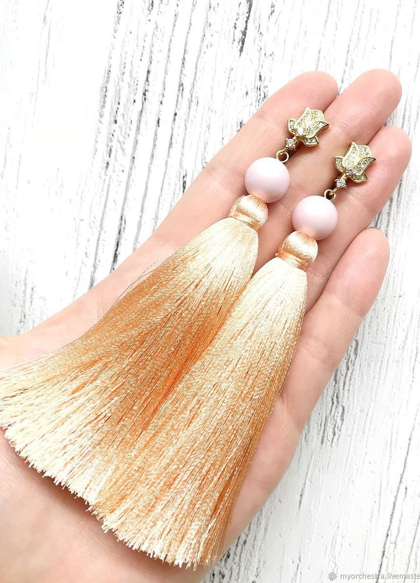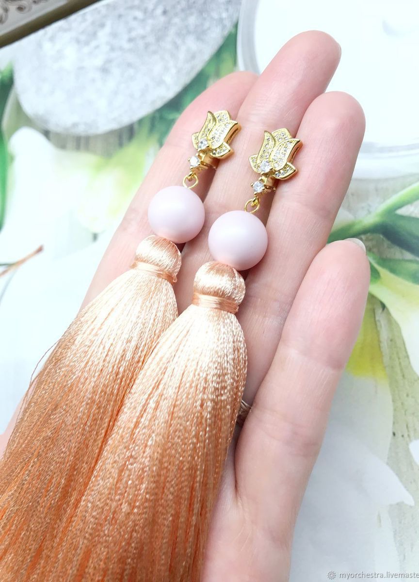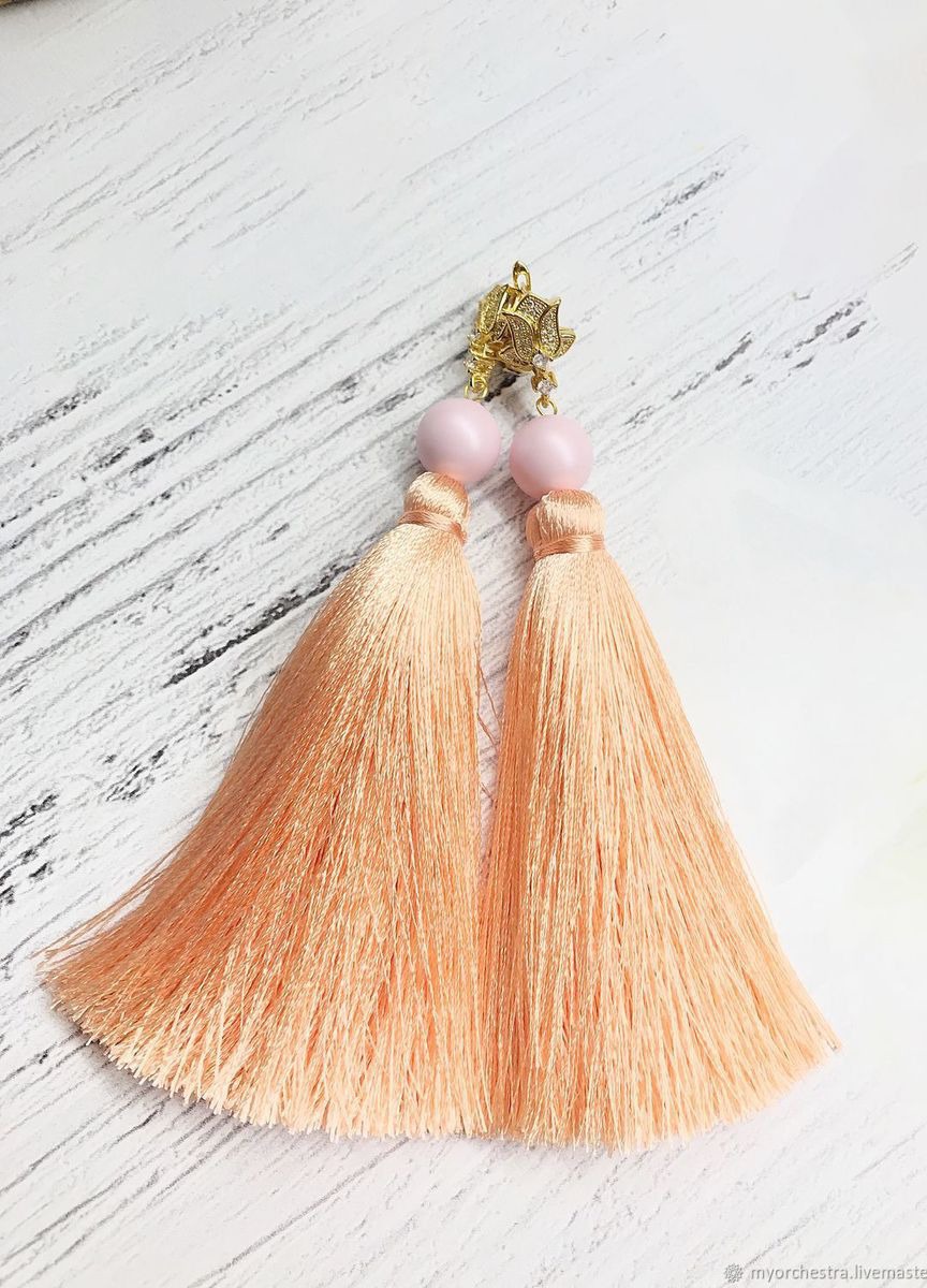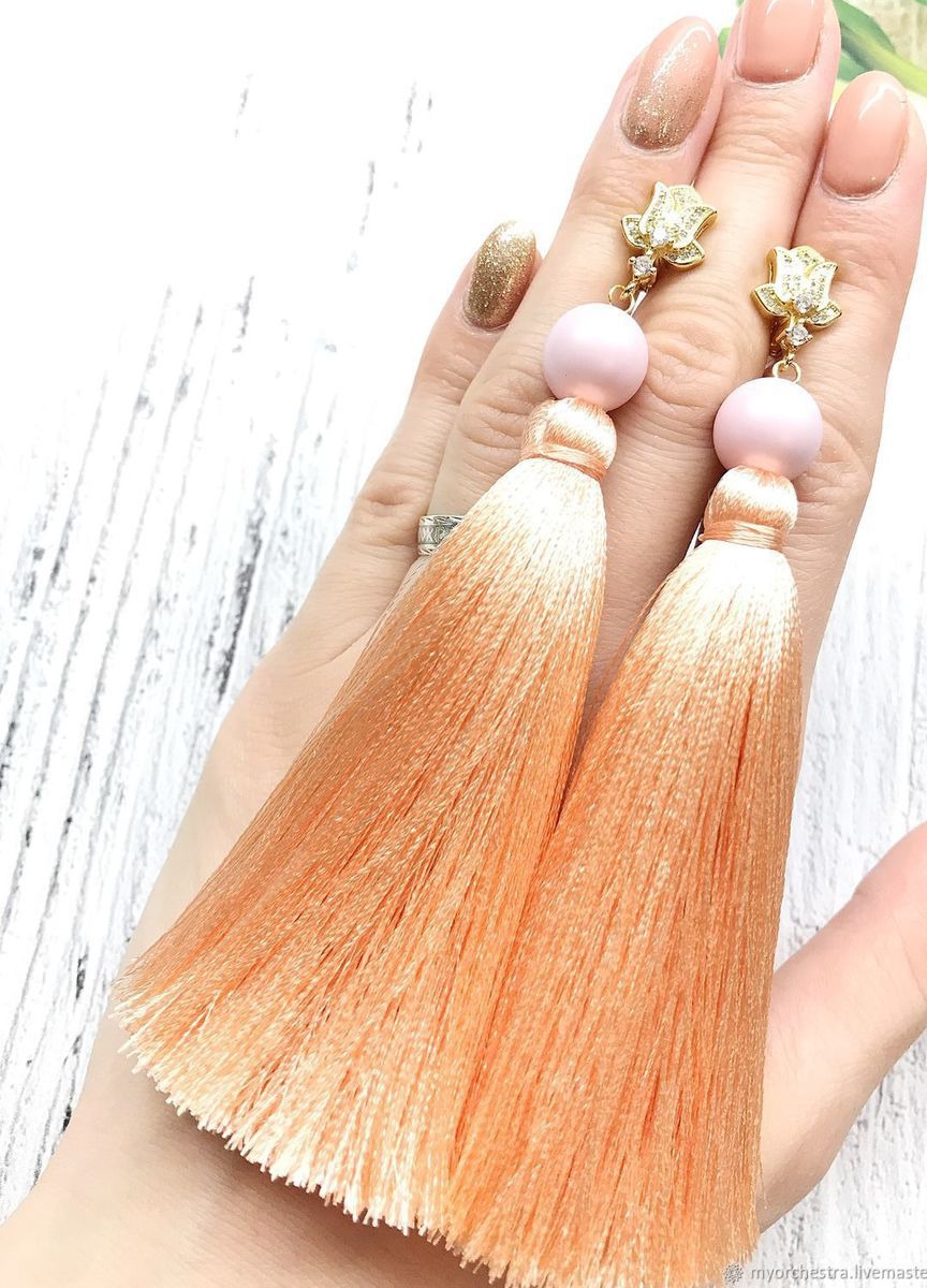 подарок девушке, красивые серьги, серьги, серьги ручной работы, выпускной, серьги-кисти, купить, серьги кисточки, серьги длинные, серьги в подарок, москва, серьги купить, серьги на выпускной, серьги на свадьбу, СПб, серьги кисточки купить, серьги кисти купить, серьги кисти шелк, серьги на заказ, персиковые серьги