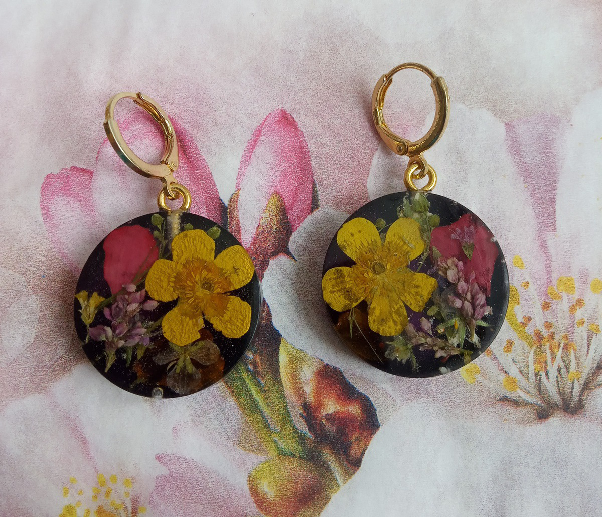 Серьги из эпоксидной смолы и сухоцветов. Ручная работа. Круглые.