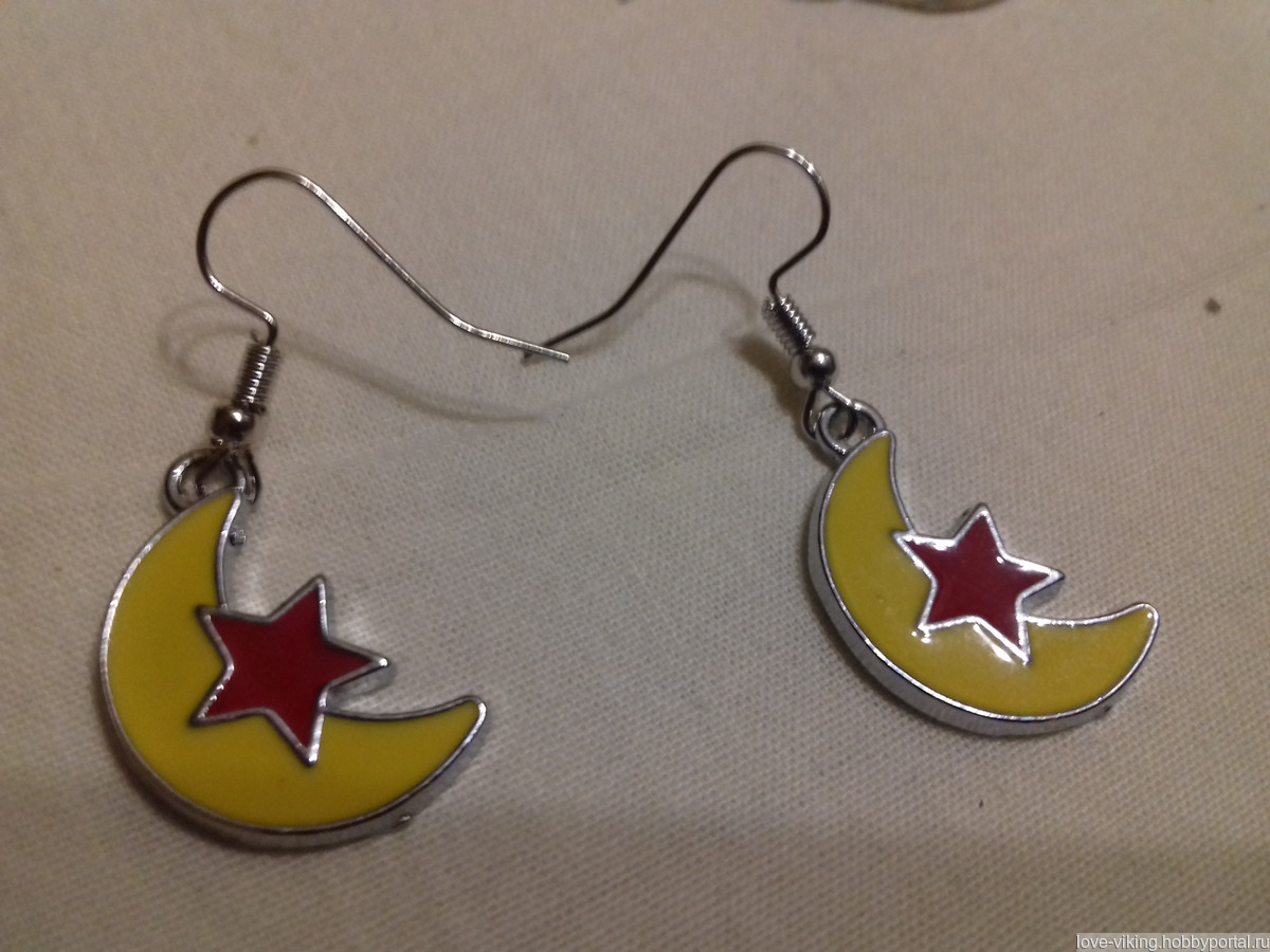 Серьги с эмалированными подвесками в виде месяца и звезды
