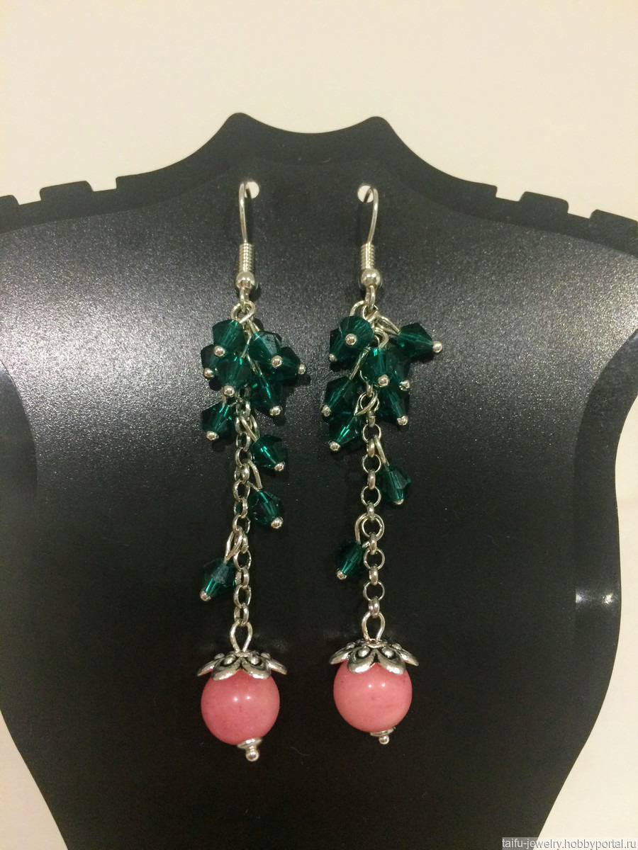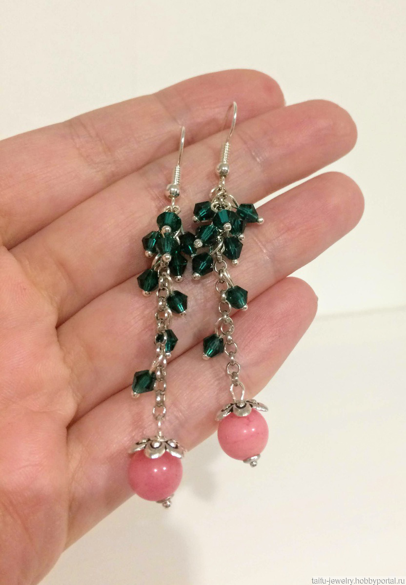 подарок, серьги, нефрит, натуральные камни, серьги в подарок, серьги с камнями, нефрит натуральный, серьги из камней, чешские стеклянные бусины, серьги с нефритом, родированная фурнитура