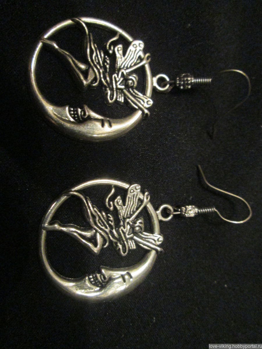 Серьги со стилизованными подвесками виде фей с лунами