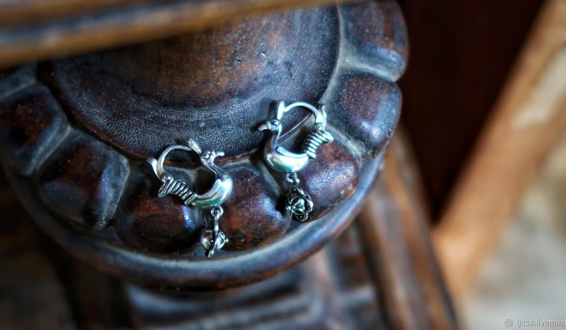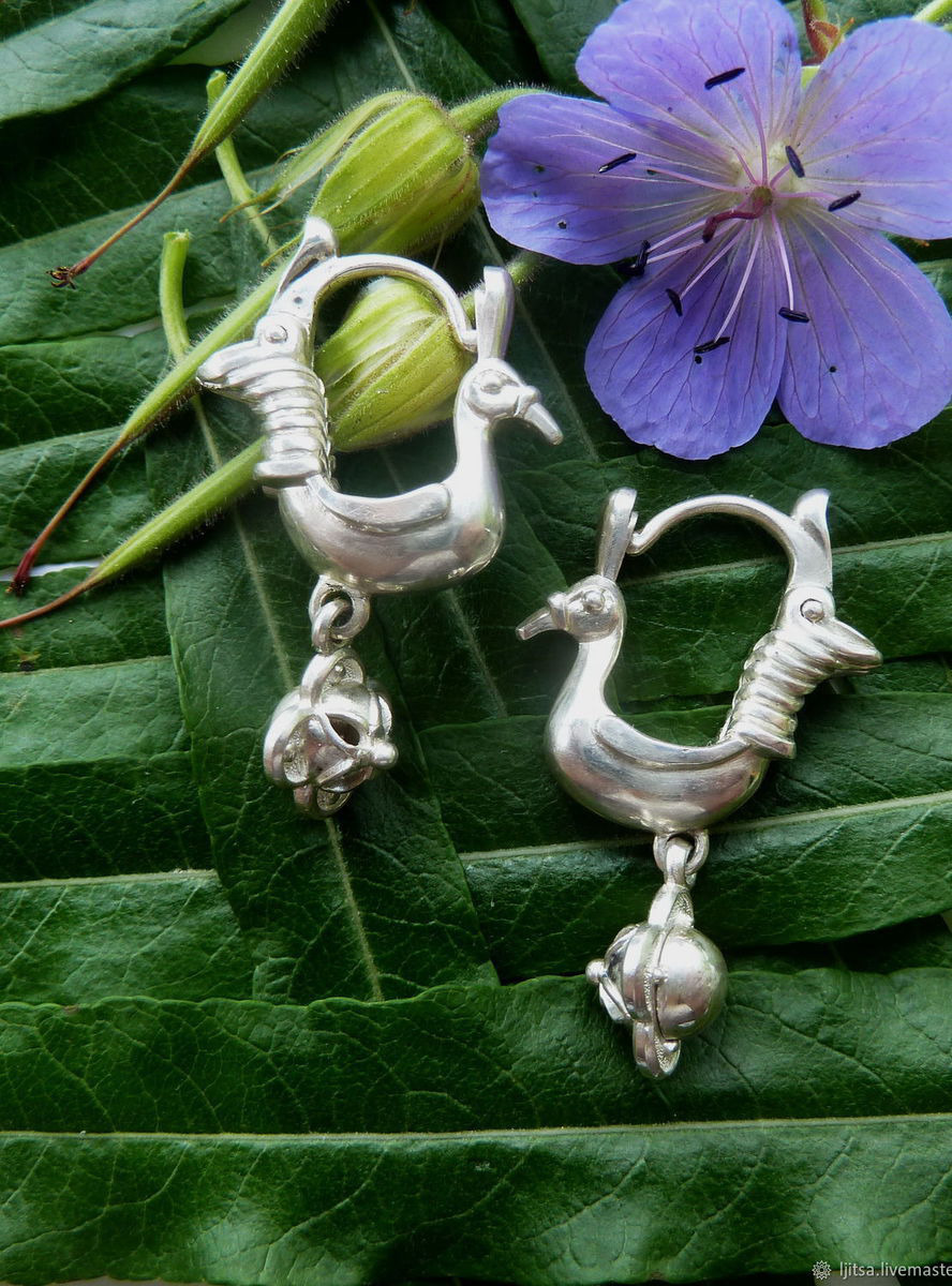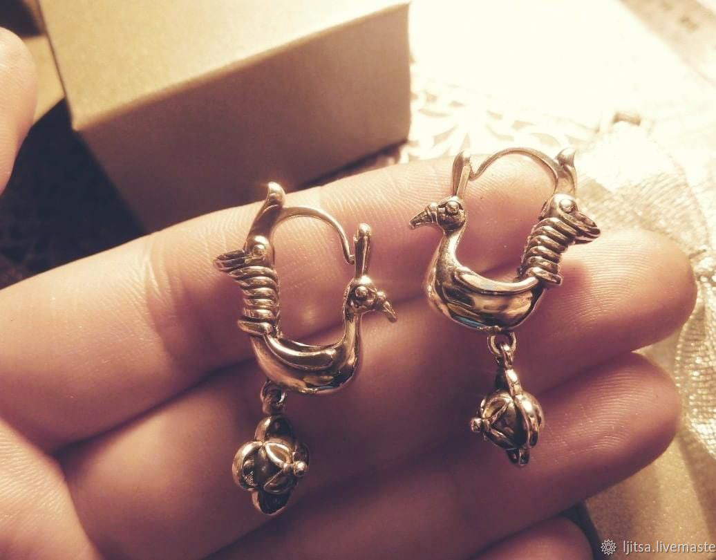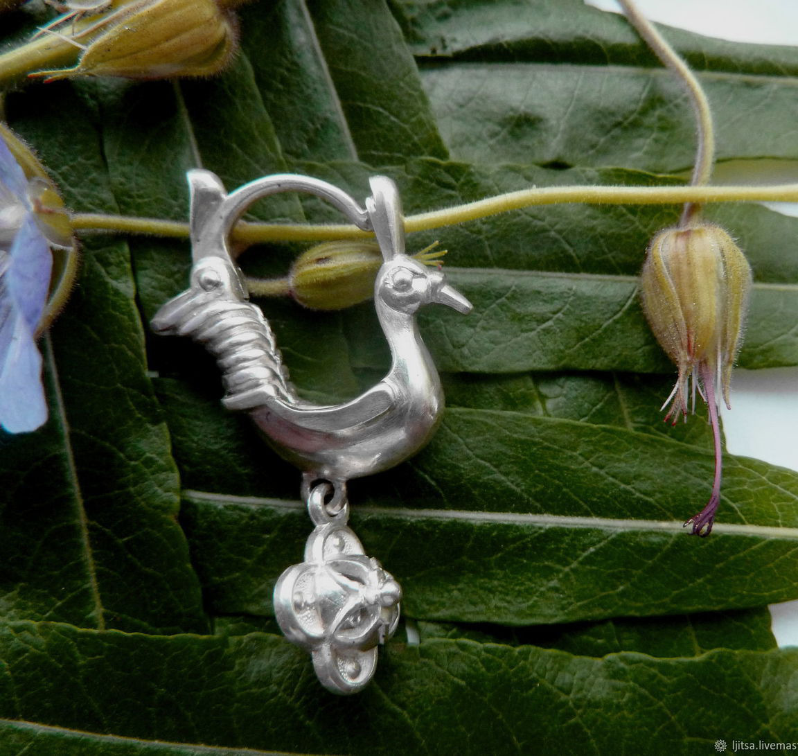 Замечательные серьги в виде птичек-павлинов.Застёжка замка расположена спереди.Серьги объёмные .Размер 32 мм на 21 мм. вес одной серьги примерно 4.5 гр.Если Вам понравились мои работы и Вы хотите быть в курсе новинок, нажмите кнопку-Добавить в круг