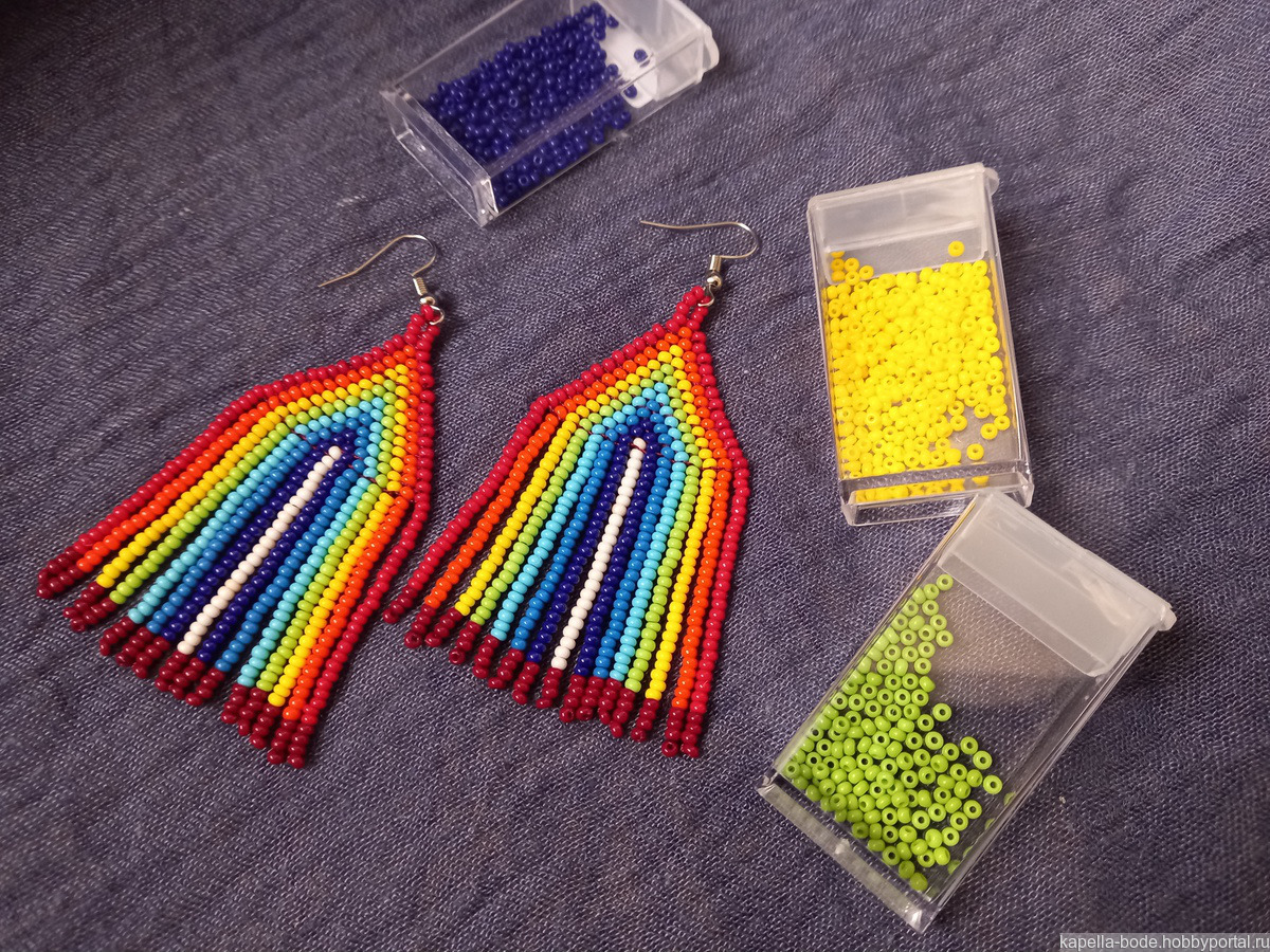 радуга, подарок девушке, серьги длинные, серьги из бисера, серьги яркие