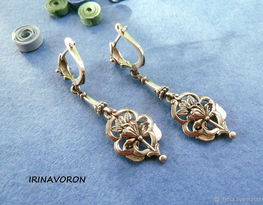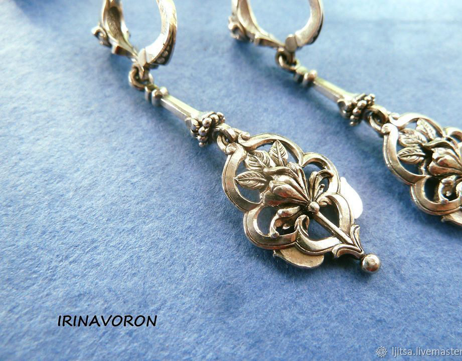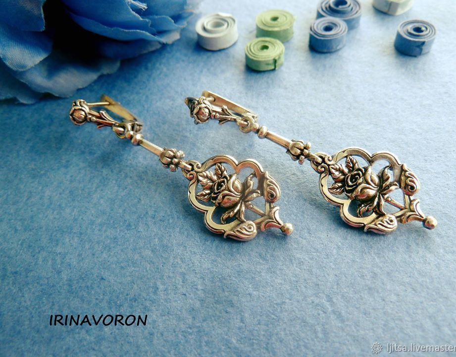 роза, цветок, подарок, серьги, серьги ручной работы, оливковый, длинные серьги, длинные сережки, серебро, серьги с подвесками, серебряные серьги, серьги с цветами, серьги-розы, серьги роза, серебряные серьги роза, серьги гравровка