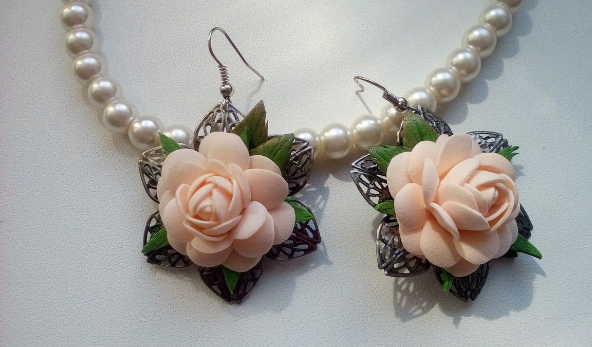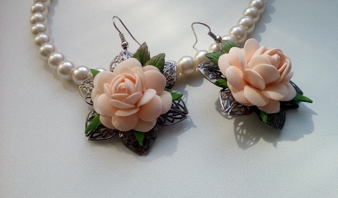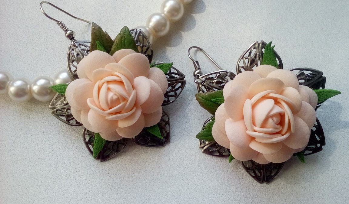 Уникальные серьги нежного персикового цвета сделают Ваш образ незабываемым. Подходят как для повседневной носки, так и для торжественных случаев. Ручная работа. В единственном экземпляре