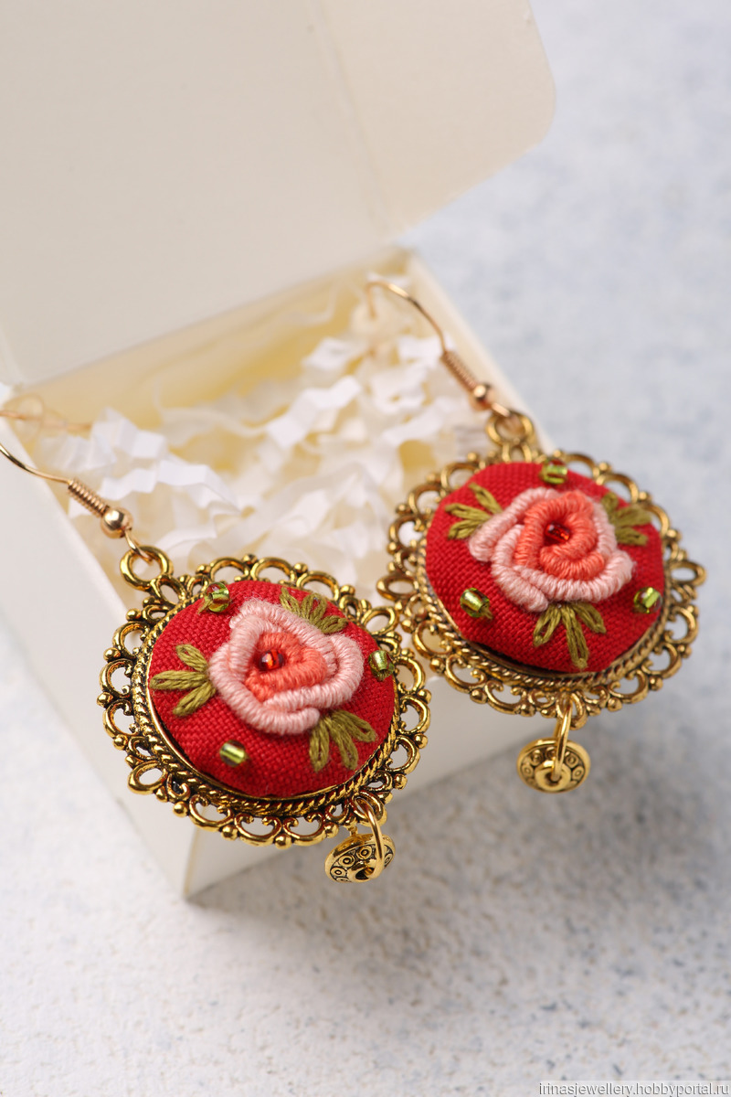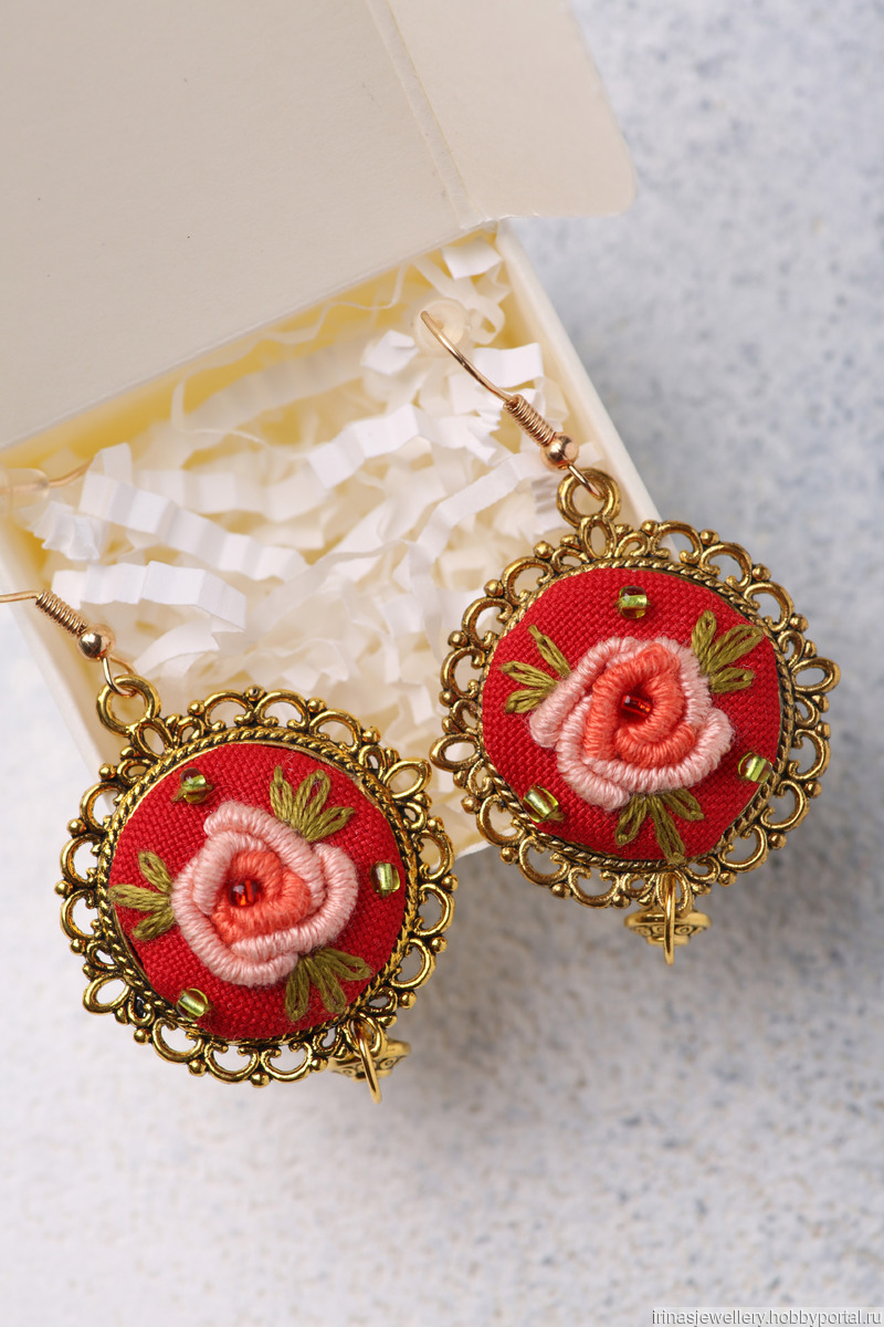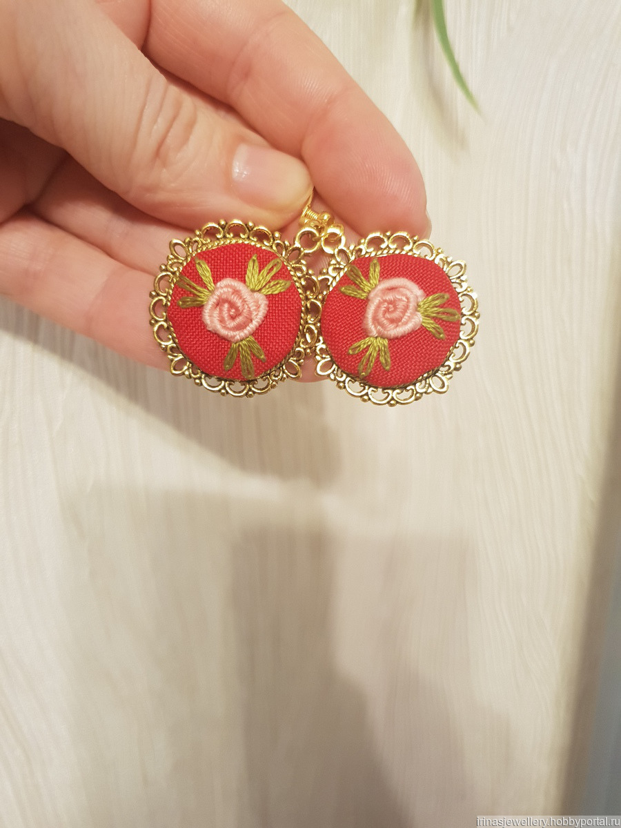 серьги, красивое украшение, handmade, украшения ручной работы, серьги ручной работы, серьги в подарок, серьги купить, вышитые серьги, красные серьги, handmade jewelry, вышитые цветы, серьги с вышивкой, украшения с вышивкой