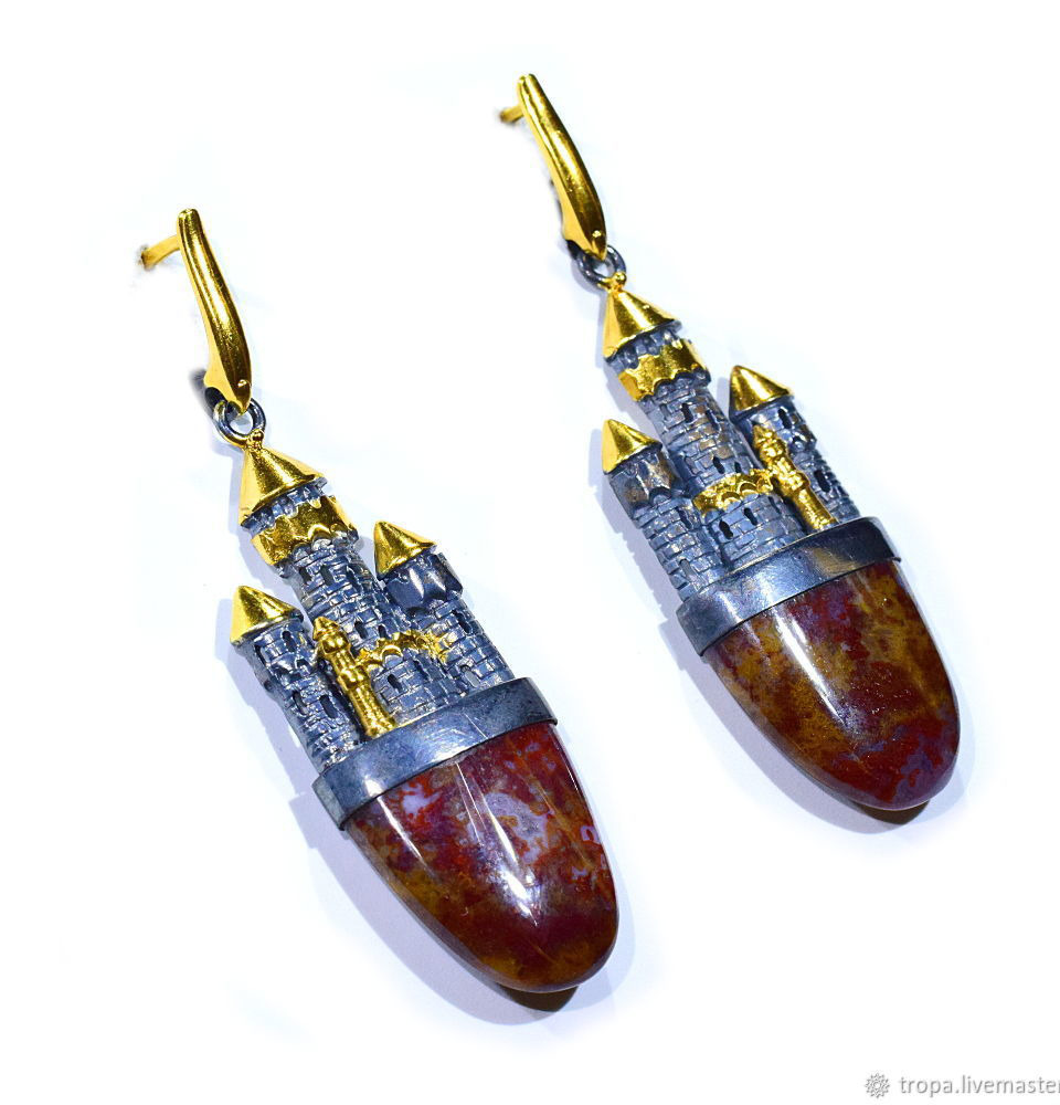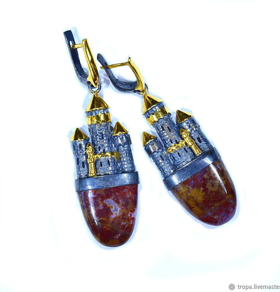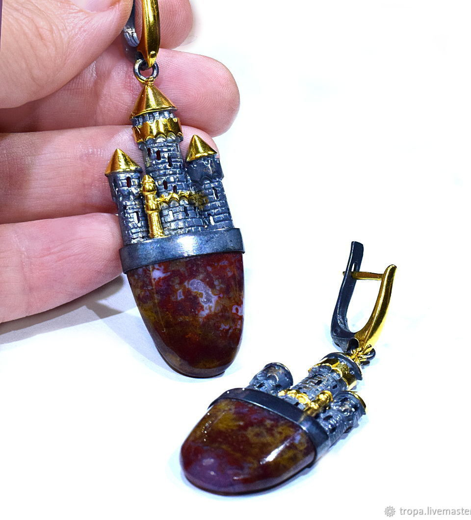 подарок девушке, подарок женщине, подарок подруге, серебро 925 пробы, серебряные серьги, серьги с агатом, город, необычные серьги, сказочный город, серебро с чернением, черный с золотым, сказочный мир, сказочные серьги, сказочный замок, волшебный замок, крупные серебряные серьги, серьги для принцессы, серьги фэнтези, серьги с городом, халцедоновый агат