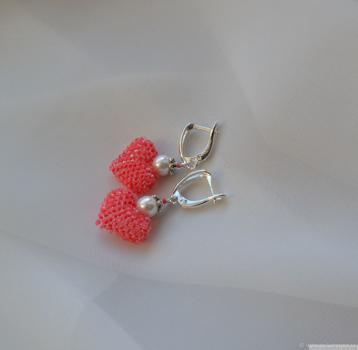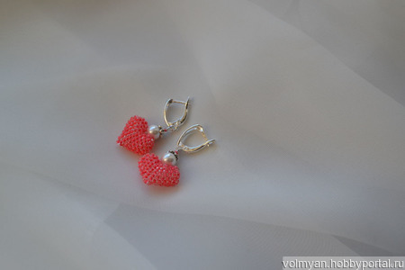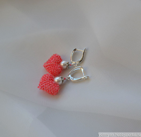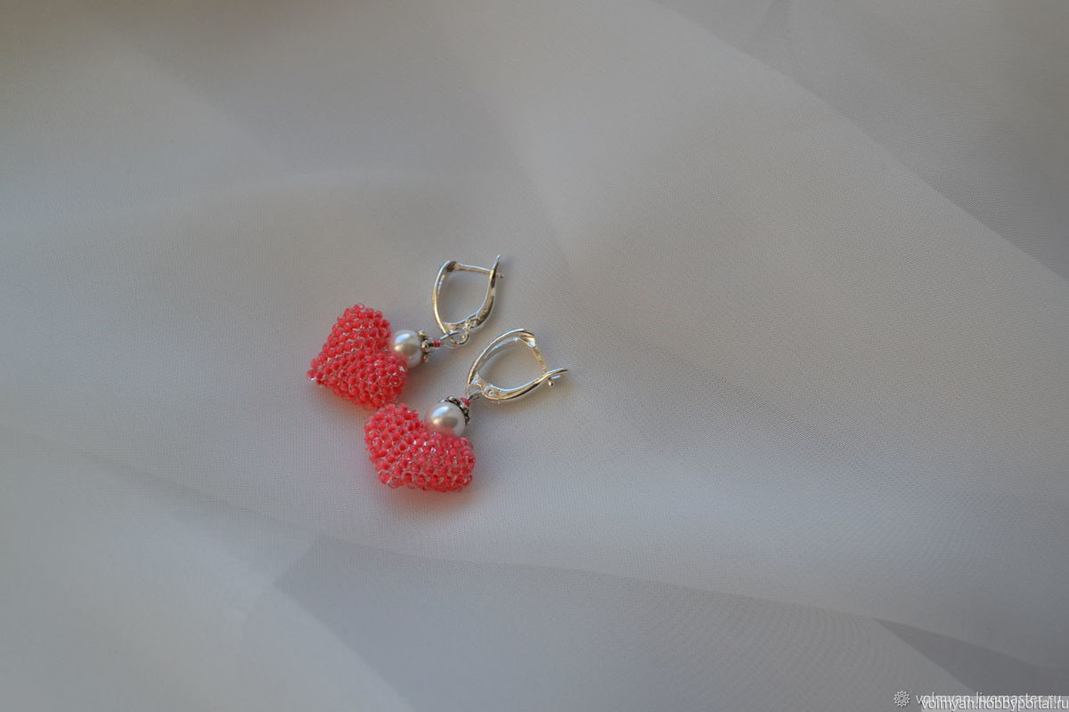 розовые серьги, серьги с жемчугом, розовые сердечки, серьги из бисера купить, серьги сердечки, сердце из бисера, сердечки из бисера, сережки сердечки, бисерные сердечки, сережки сердечки москва, сережки сердечки спб