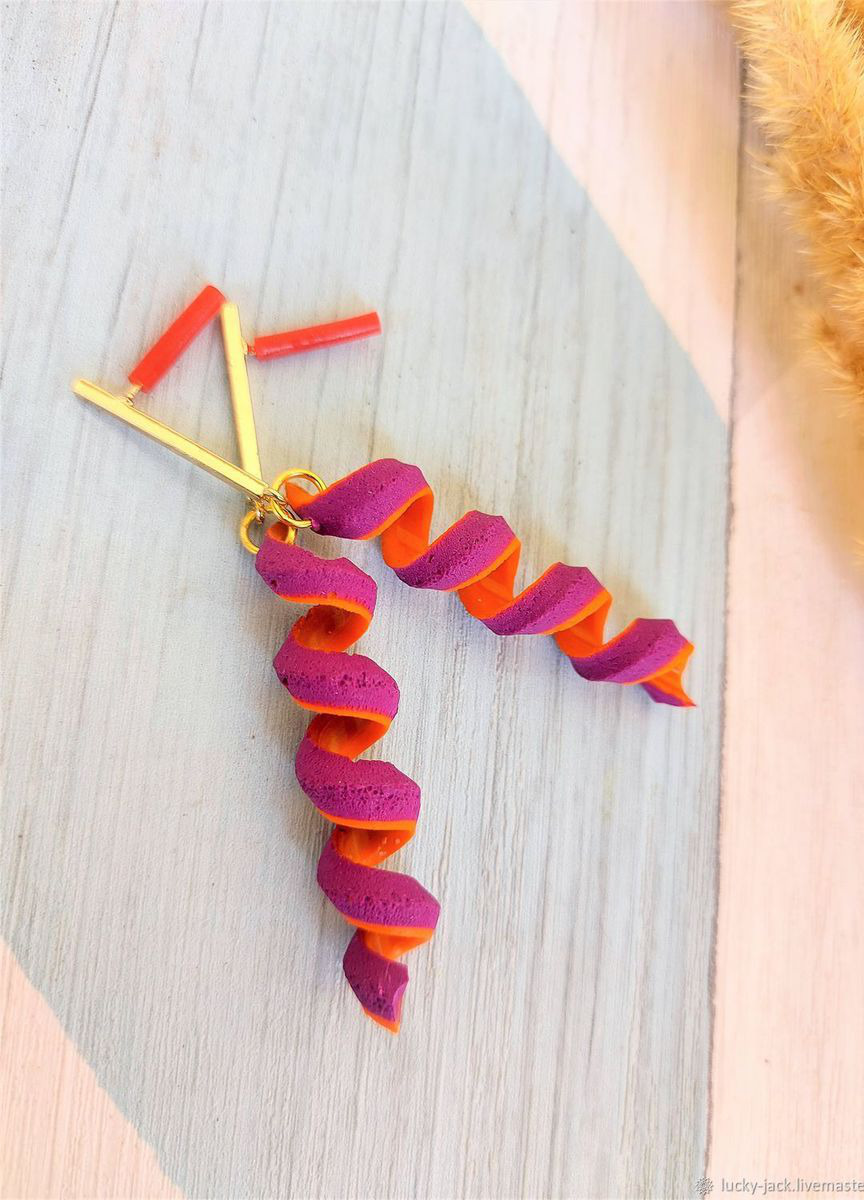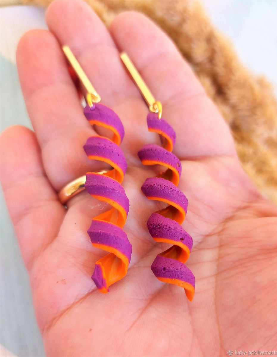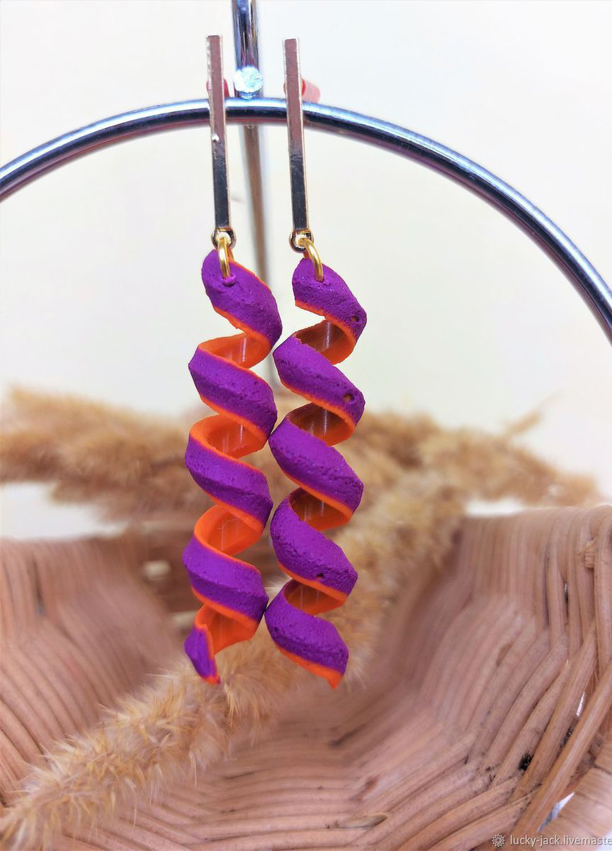 подарок на день рождения, серьги-гвоздики, уникальный подарок, серьги ручной работы, длинные серьги, серьги полимерная глина, спираль, уникальные серьги, серьги спирали, крученные серьги, двухцветные серьги, подарок на юбидей
