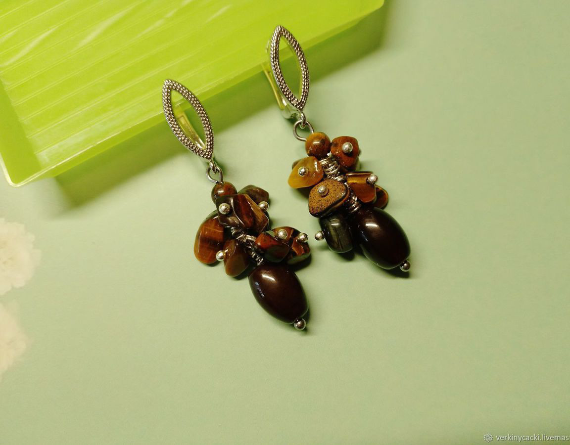 Эти уникальные серьги ручной работы выполнены с использованием натурального камня тигрового глаза, который известен своими мощными защитными свойствами и невероятной красотой. Длина сережек составляет 5 см, что делает их идеальным аксессуаром для элегантных образов на каждый день и особые случаи. Основной элемент швензы люкс качества, которое придаёт им изысканность и долговечность. Вся остальная фурнитура выполнена под серебро. Эти серьги станут не только стильным украшением, но и сильным талисманом, который принесёт удачу и защиту своей обладательнице.