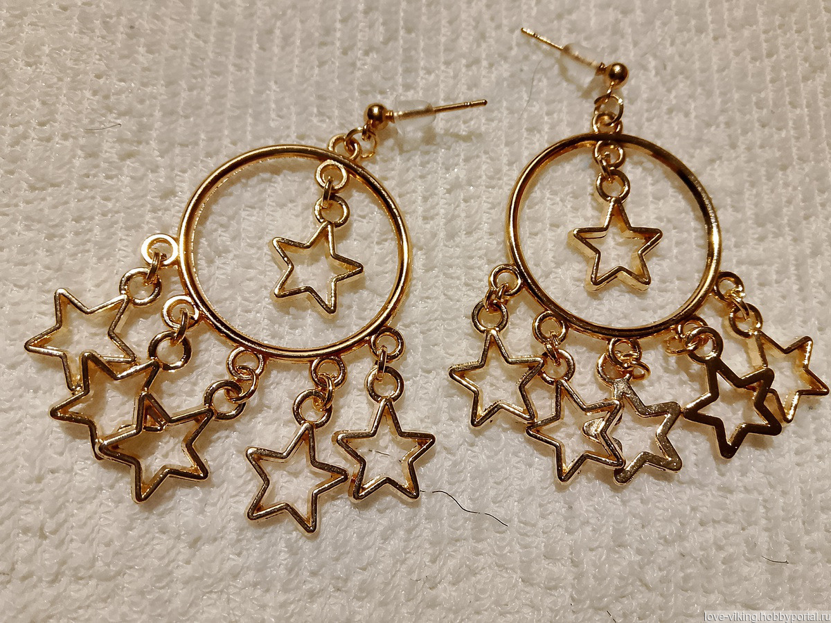 Серьги с коннекторами-кольцами и подвесками в виде полых звёзд